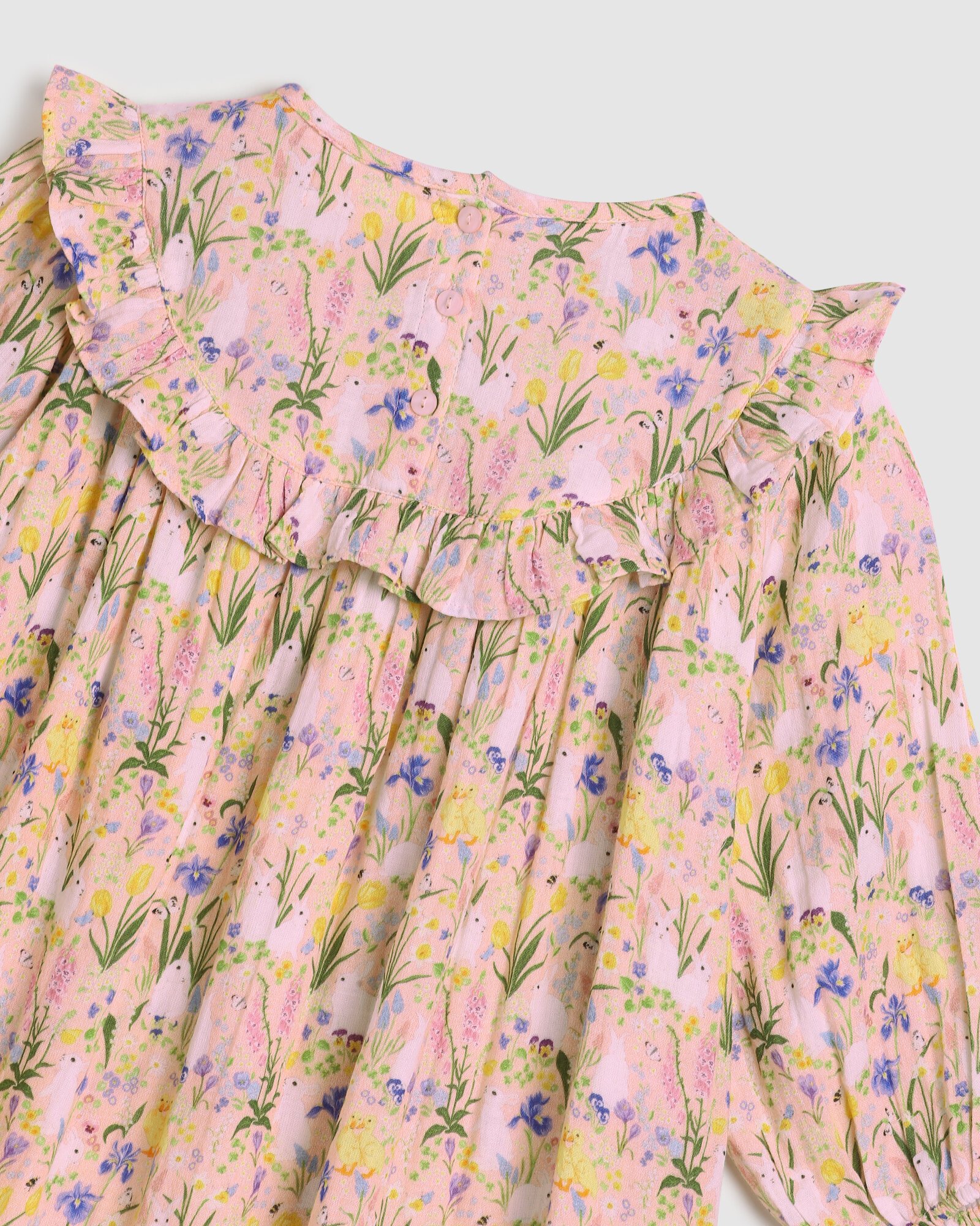 The Blossom Dress in Bunnies print is a delightful choice for every occasion. With a gorgeous front frill across the neck, gathered skirt and long sleeves, this dress features a gorgeous bunny fabric and a comfortable, easy-to-wear silhouette.