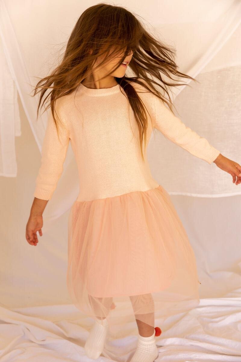 Aren't you in love with the Darling Dress? The beautiful tulle that softly drapes to her ankles and the knit that keeps her cozy in the winter breeze - your little miss will look like a tiny ballerina! Made from a gentle cotton knit fabric and tulle that is soft on the skin. Perfect for your little miss.