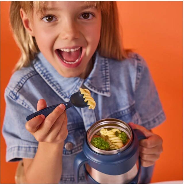 Keeps food at the perfect temperature all day, whether kids prefer warm pasta for lunch or cold refreshing fruit and yoghurt.  Great for kinder and school with a 335ml capacity.  Comes with spork utensil that tucks away into custom bumper.