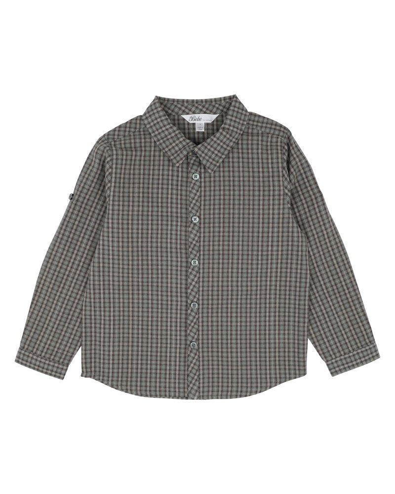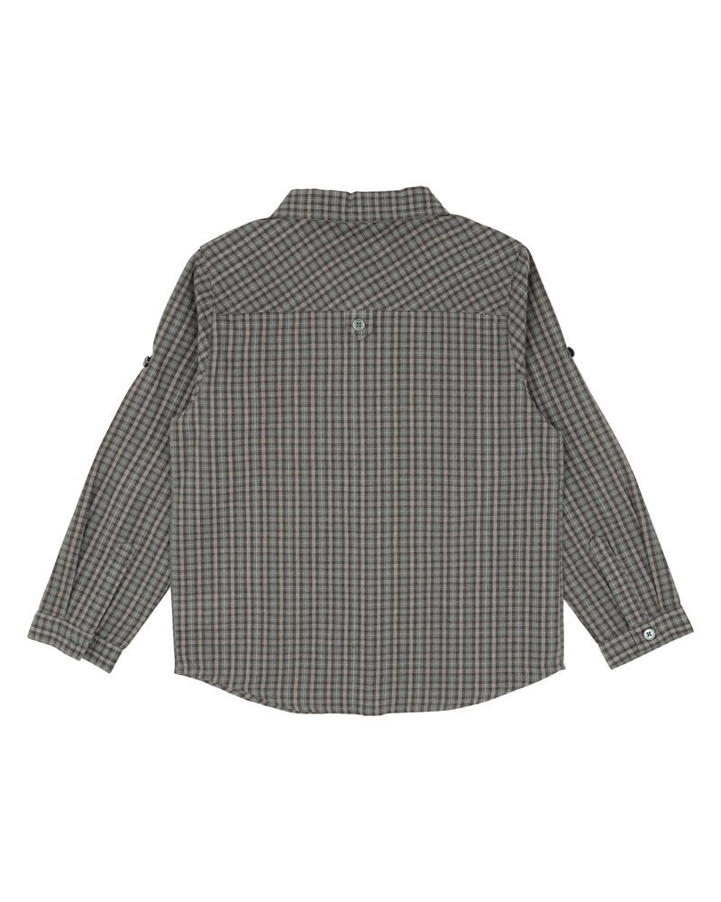 This cotton check shirt features a button up collar and adjustable long sleeves with buttoned sleeve tabs giving the option to make shirt short sleeved is and perfect for dressing up your little man.