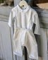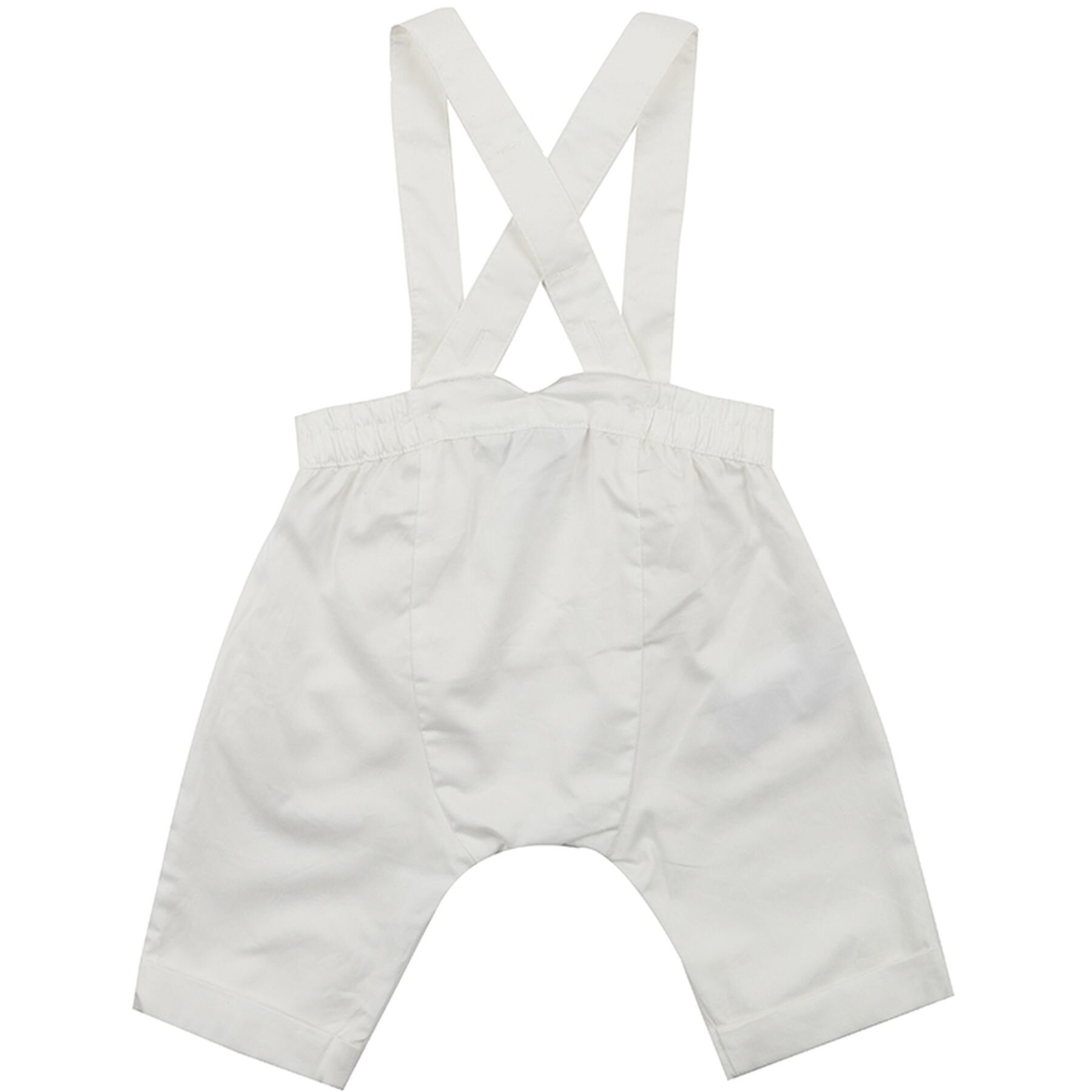 These ivory cotton sateen overalls with front button opening is the perfect piece for your little one's special day, pair it back with the Crown bodysuit to complete the outfit.