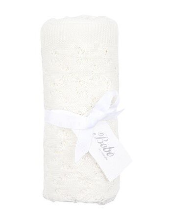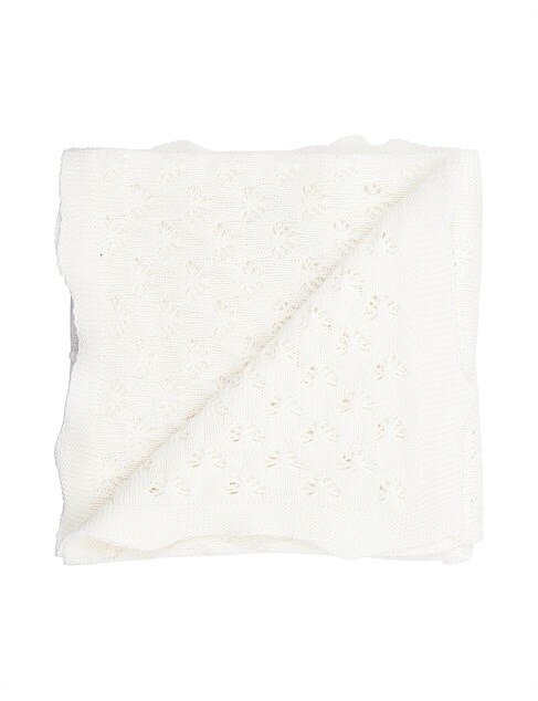 This beautiful 100% cotton blanket measuring 95cm x 100cm with its delicately knitted design and scalloped edge is warm and elegant to wrap your little one in for any special occasion.