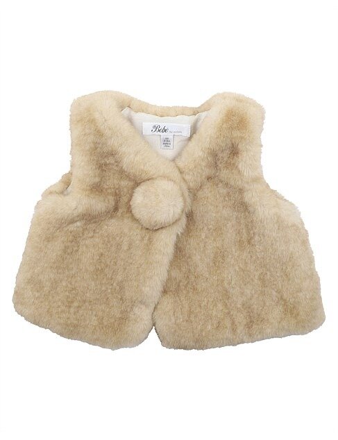 Bebe Pom Pom Faux Fur Baby Vest