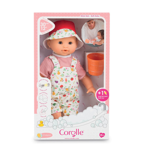 Dressed in a charming outfit and wears a matching sun hat and complete with its own bath toy, Bebe Bath is part of the mon premier poupon Corolle collection of dolls, clothing and accessories for early nurturing time.