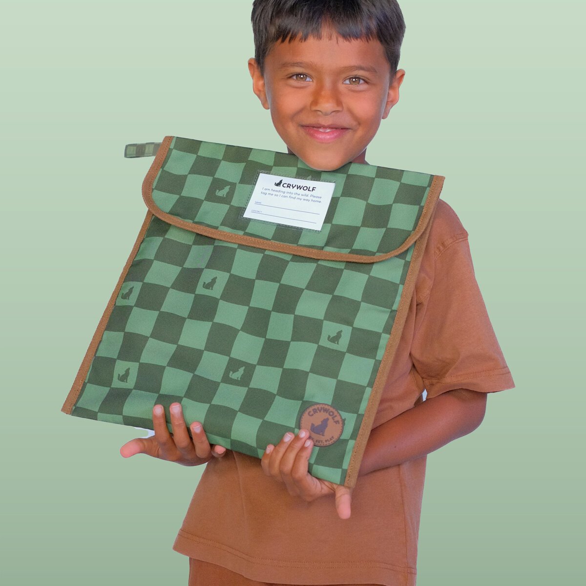 Perfect for kids with big imaginations and even bigger dreams, the Crywolf Book Bag will keep their books and homework protected, to and from school. Made using recycled materials and featuring a water resistant coating, the Book Bag is durable, practical and easy to clean. The large size will suit their school needs and the velcro close provides easy access for little hands. Teachers will love the external name card for easy identification.