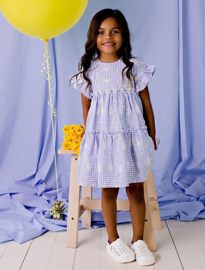 The Alice Gingham Tiered Dress features super-soft blue gingham fabric, two-tiered skirt with ruffle feature, contrast button closure at the back and frilly sleeves. This dress can be dressed up or down and is perfect for any occasion! Contents: 100% CottonDesigner Kidz is an Australian independent children’s fashion label, focusing on thoughtful, quality and authentic designs. Designed in Melbourne, they are strongly committed to quality fabrics, inspiring styles and old school customer service. They're proud to be a 3rd generation Australian family owned and operated business, since 1990. Perfect for Weddings, Birthdays or any other special occassion the Kid Republic team love the aesthetic & quality of this iconic Australian label.