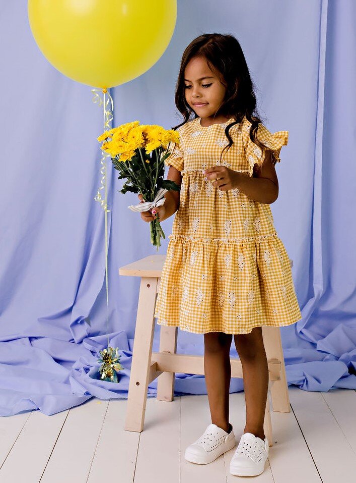The Alice Gingham Tiered Dress features super-soft yellow gingham fabric, two-tiered skirt with ruffle feature, contrast button closure at the back and frilly sleeves. This dress can be dressed up or down and is perfect for any occasion! Contents: 100% CottonDesigner Kidz is an Australian independent children’s fashion label, focusing on thoughtful, quality and authentic designs. Designed in Melbourne, they are strongly committed to quality fabrics, inspiring styles and old school customer service. They're proud to be a 3rd generation Australian family owned and operated business, since 1990. Perfect for Weddings, Birthdays or any other special occassion the Kid Republic team love the aesthetic & quality of this iconic Australian label.