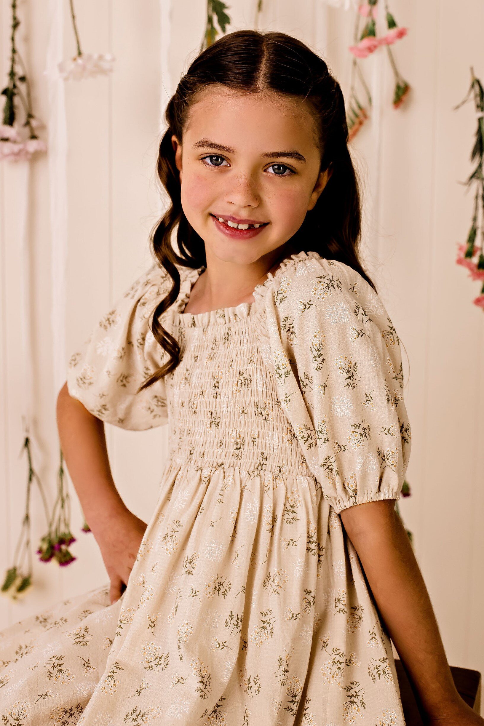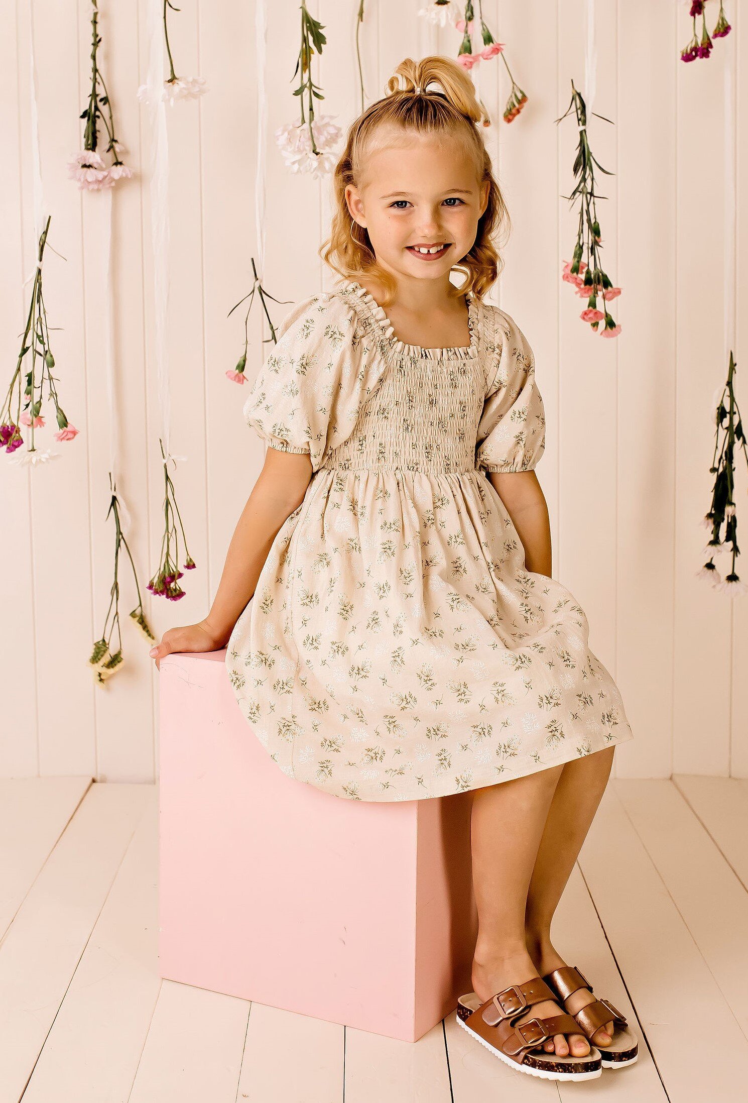 The Thea Floral Puff Sleeve Dress features puff sleeves, shirred bodice and gathered skirt. This dress can be dressed up or down and is perfect for any occasion! Material: Cotton/RayonDesigner Kidz is an Australian independent children’s fashion label, focusing on thoughtful, quality and authentic designs. Designed in Melbourne, they are strongly committed to quality fabrics, inspiring styles and old school customer service. They're proud to be a 3rd generation Australian family owned and operated business, since 1990. Perfect for Weddings, Birthdays or any other special occassion the Kid Republic team love the aesthetic & quality of this iconic Australian label.