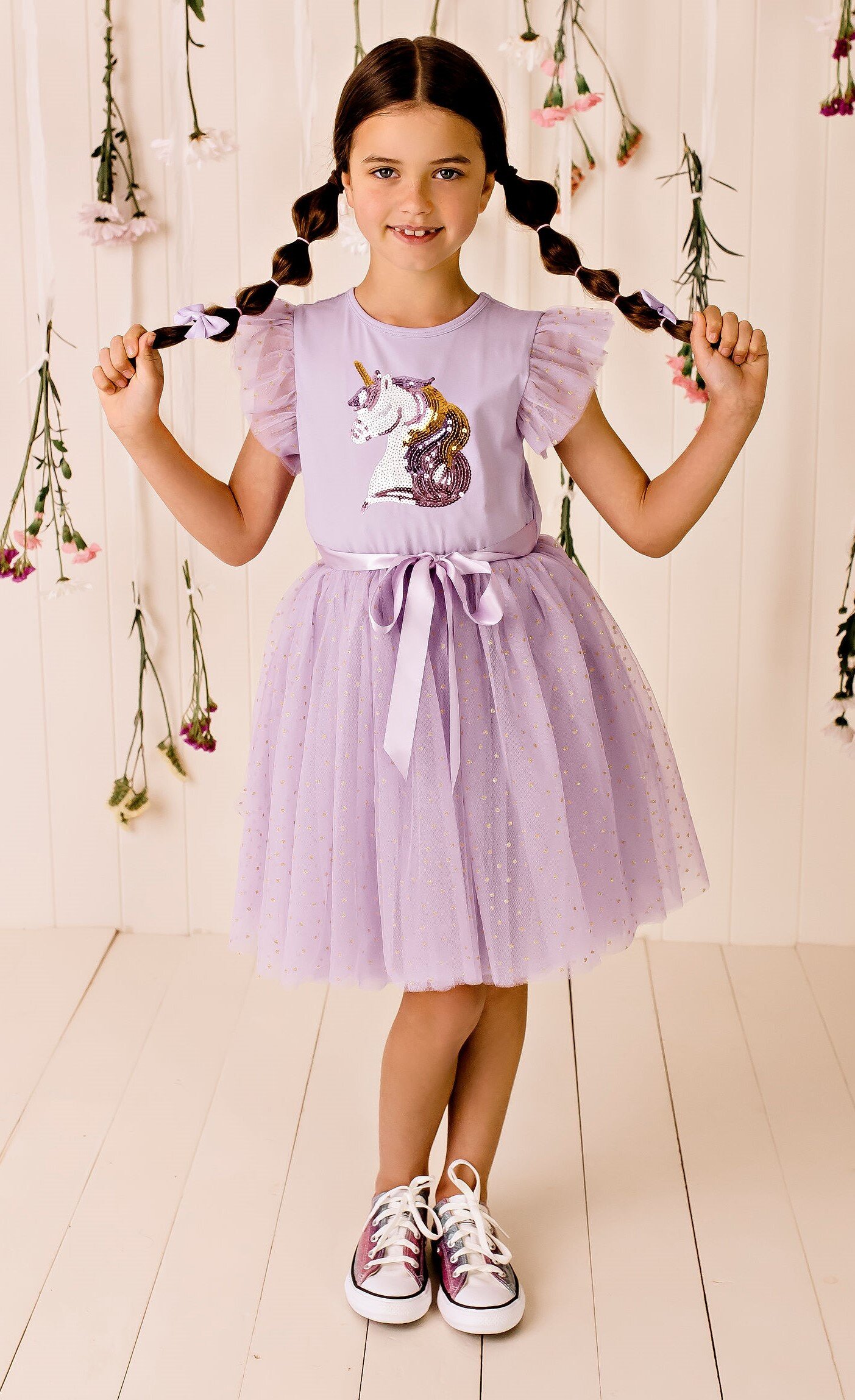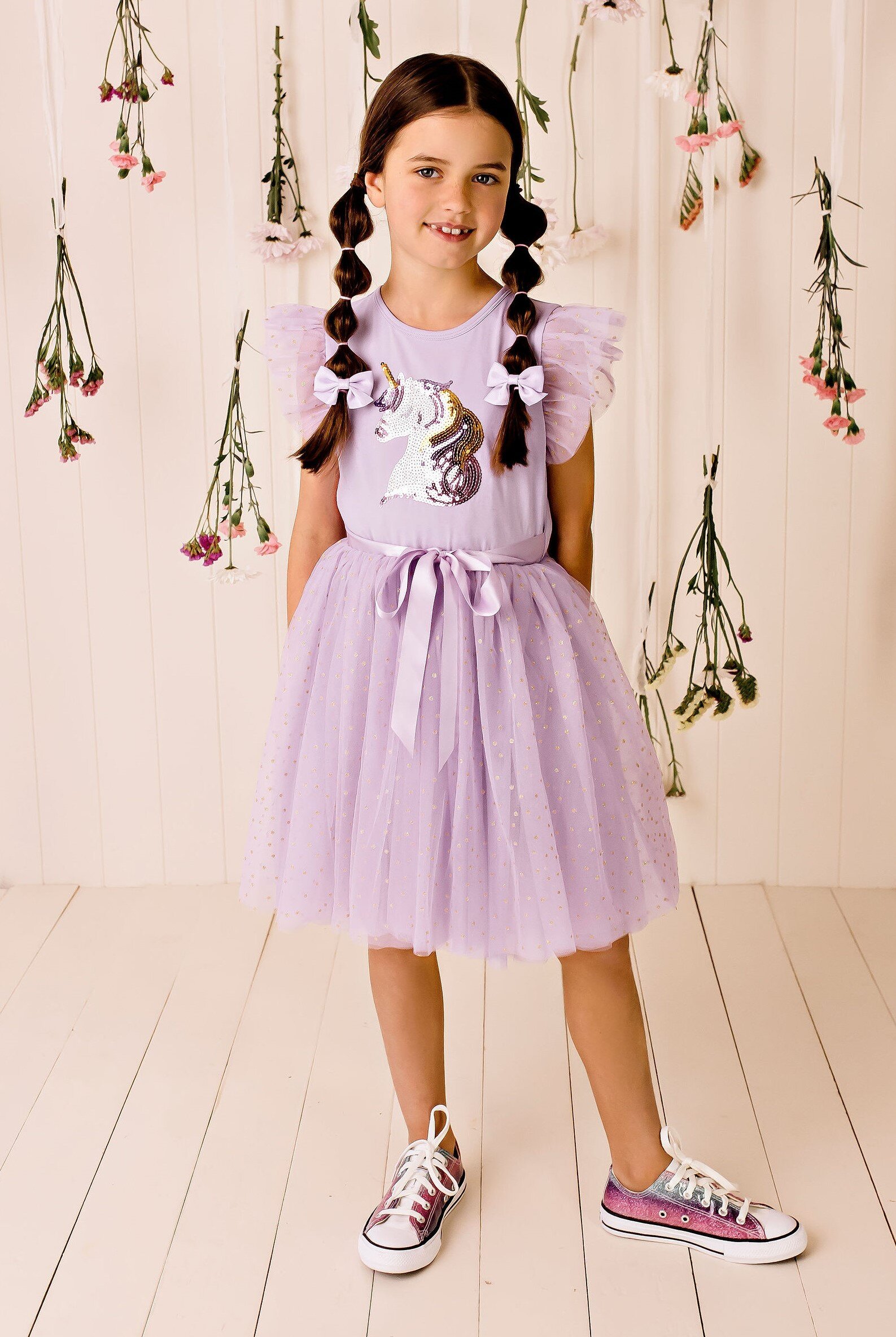 This Unicorn Sequin Tutu Dress is sure to be a magical addition to any wardrobe. Adorned with a sequin unicorn design, this dress is stylish and whimsical. Perfect for dress-up, parties, or everyday wear, this dress is a must-have for any unicorn lover.Designer Kidz is an Australian independent children’s fashion label, focusing on thoughtful, quality and authentic designs. Designed in Melbourne, they are strongly committed to quality fabrics, inspiring styles and old school customer service. They're proud to be a 3rd generation Australian family owned and operated business, since 1990. Perfect for Weddings, Birthdays or any other special occassion the Kid Republic team love the aesthetic & quality of this iconic Australian label.