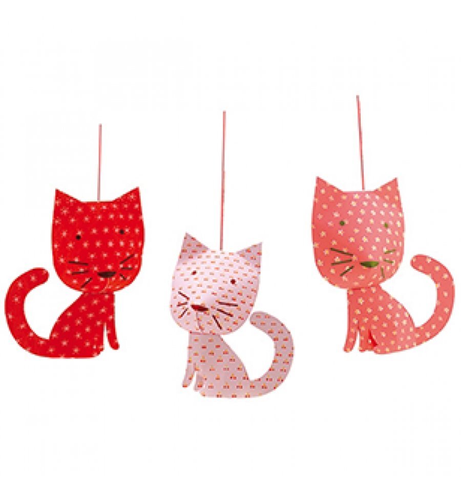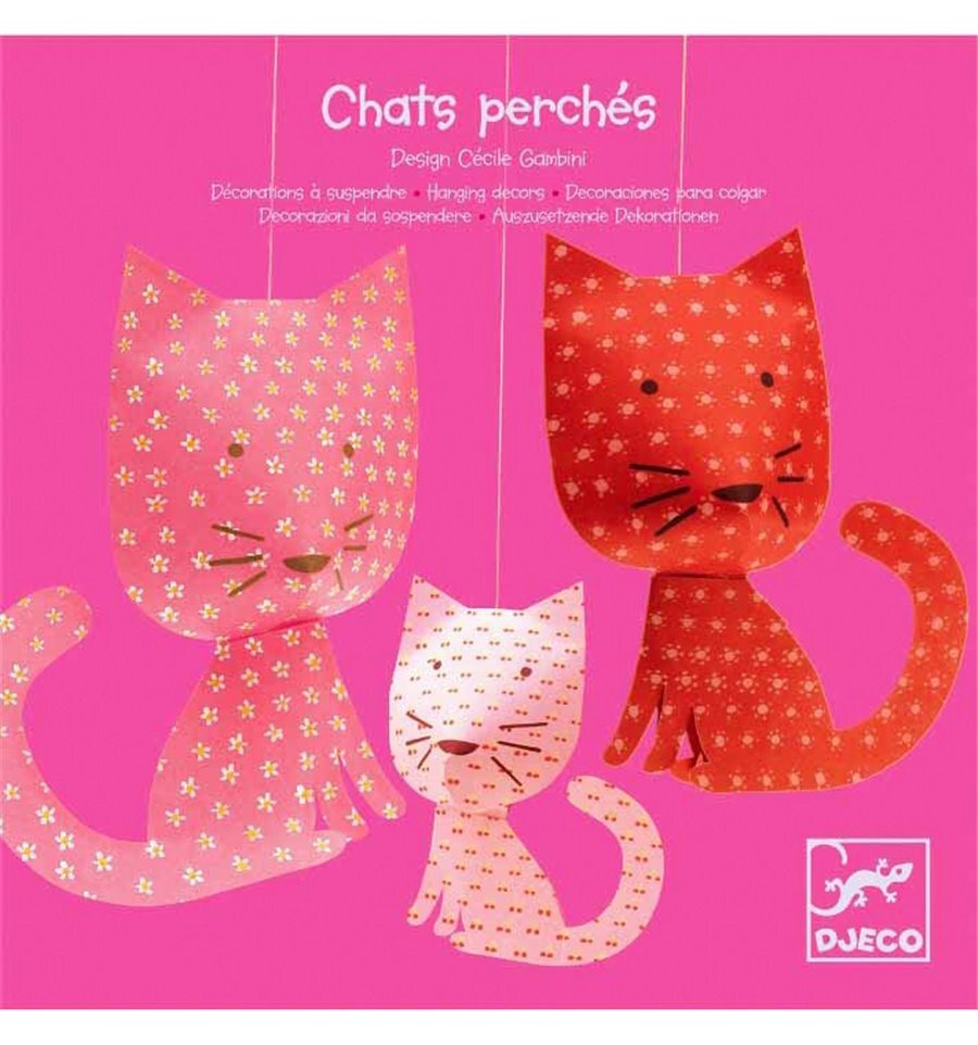 Beautiful and easy to assemble, hanging paper decorations add cheer and color to any space Featherweight decorations float and spin with changing air currents These delicate cats were designed in France by Cecile Gambini. Kitty sizes varies from 4.7 high x 4 wide to 6.5 wide x 5.1 high