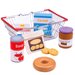 Pop to the shops with this realistic metal toy shopping basket and wooden groceries. Perfectly sized for little hands the basket is super comfortable to carry and sturdy enough to carry all your groceries. Includes wooden milk, cereal, soup, cookies, chocolate spread and bread. The sturdy handles fold flat for easy folding or stacking. A great addition to any play kitchen or shop. A great way to encourage creative and imaginative role play.Made from high quality, responsibly sourced materials. Conforms to current European safety standards. Age 3+ years.