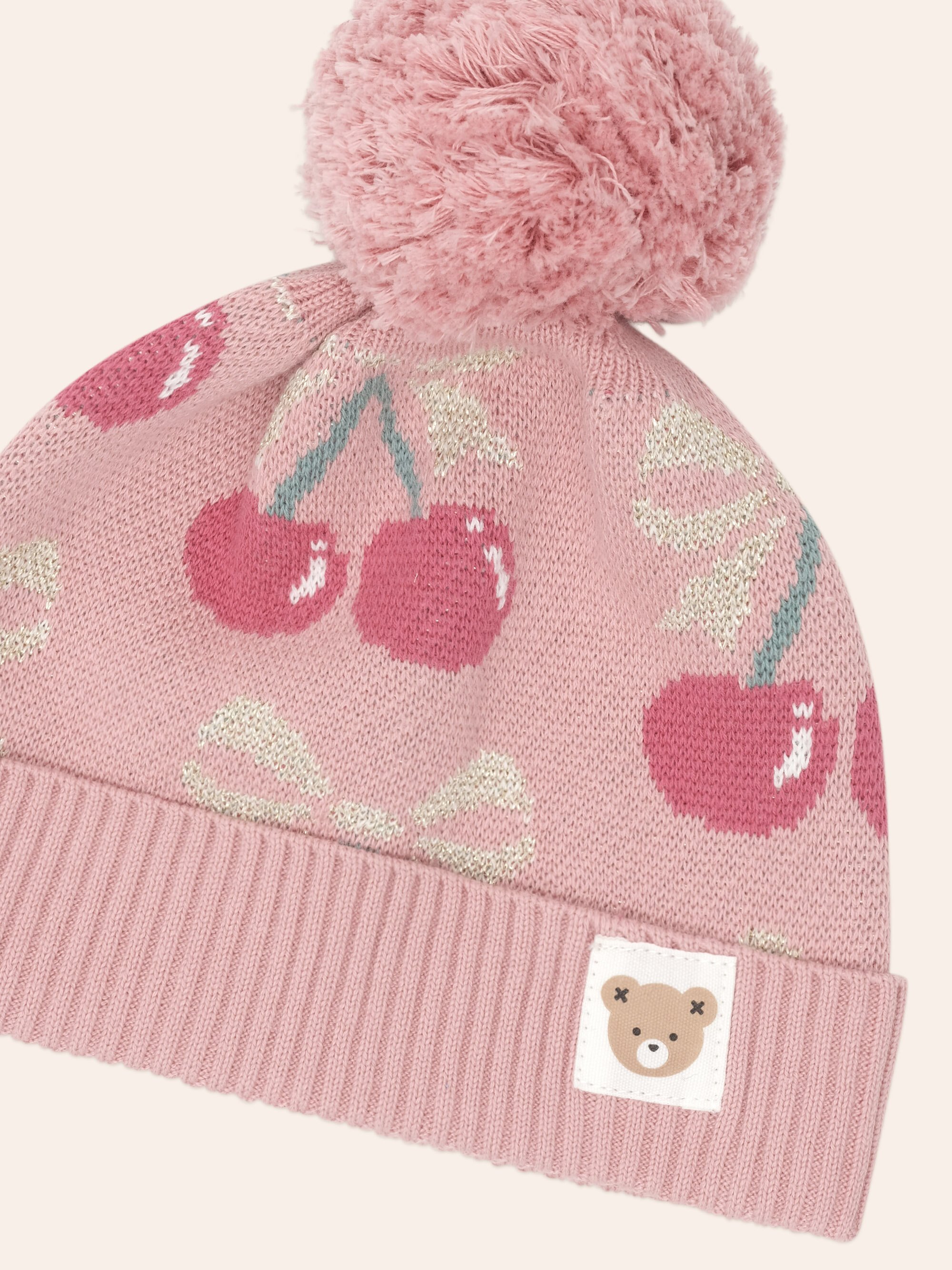 Huxbaby Cherry Bow Beanie - Dusty Pink (Pre-Order)