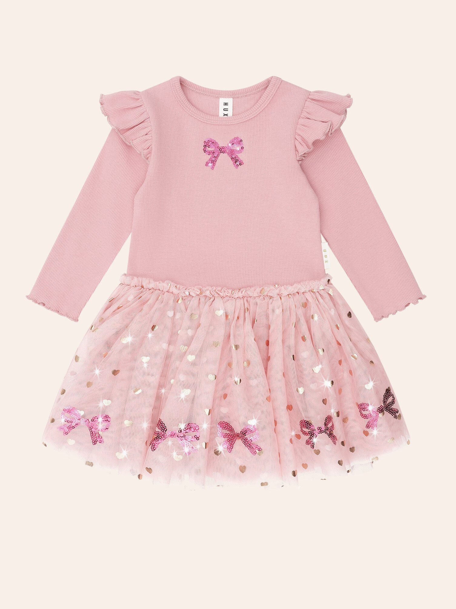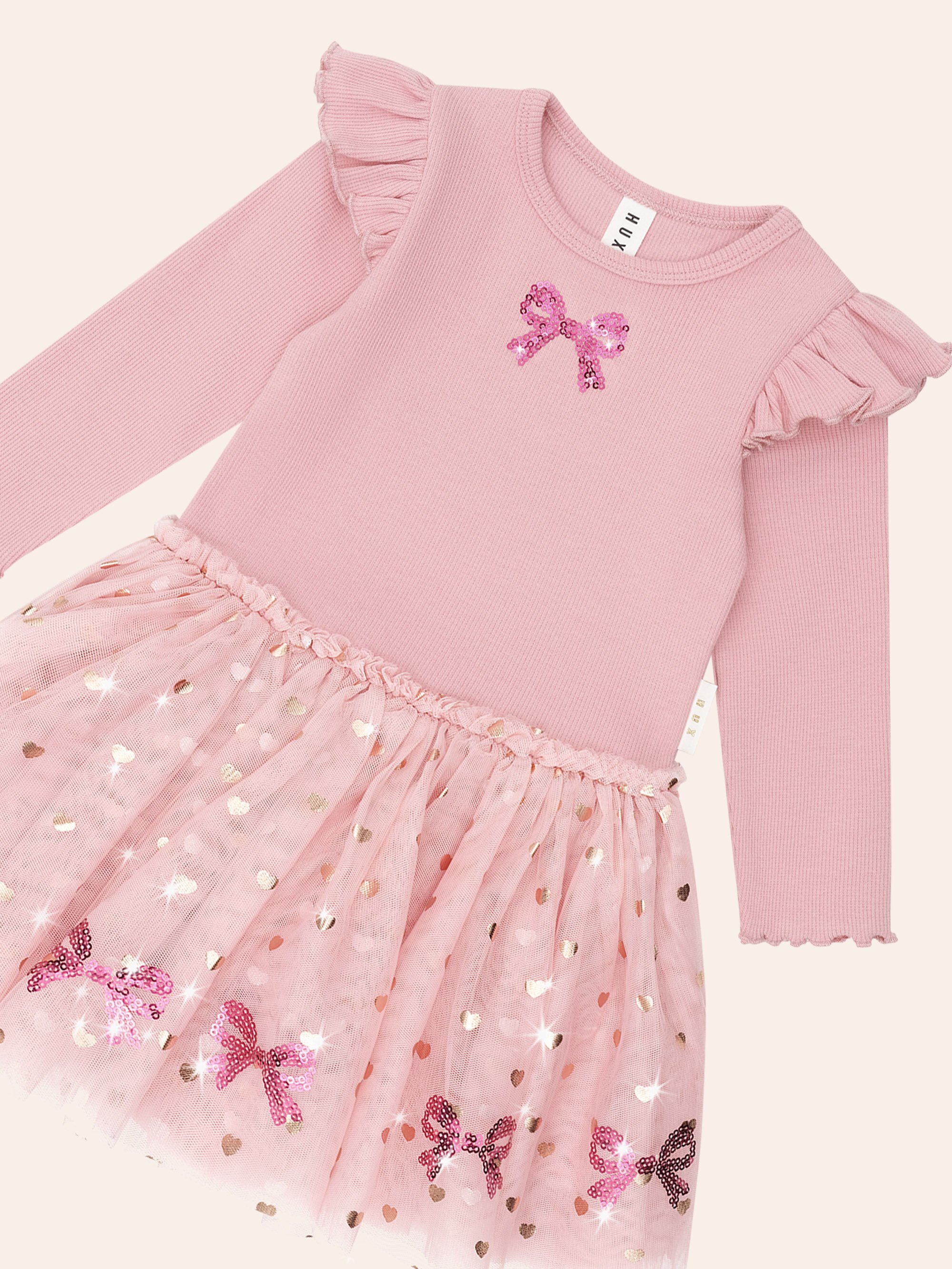 Huxbaby Sequin Bow Tulle Dress - Dusty Pink (Pre-Order)