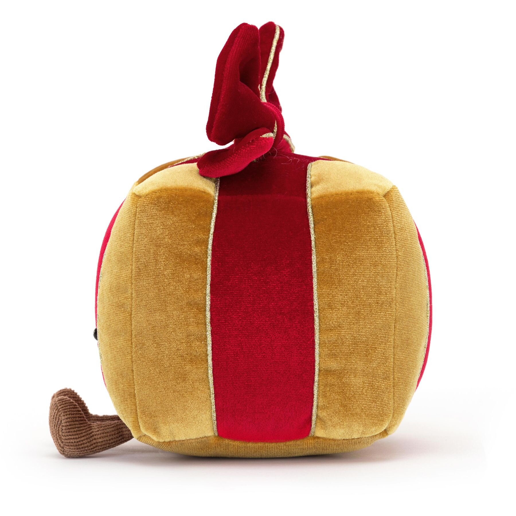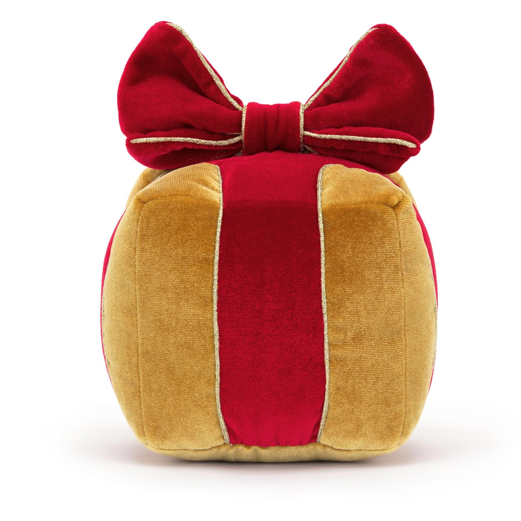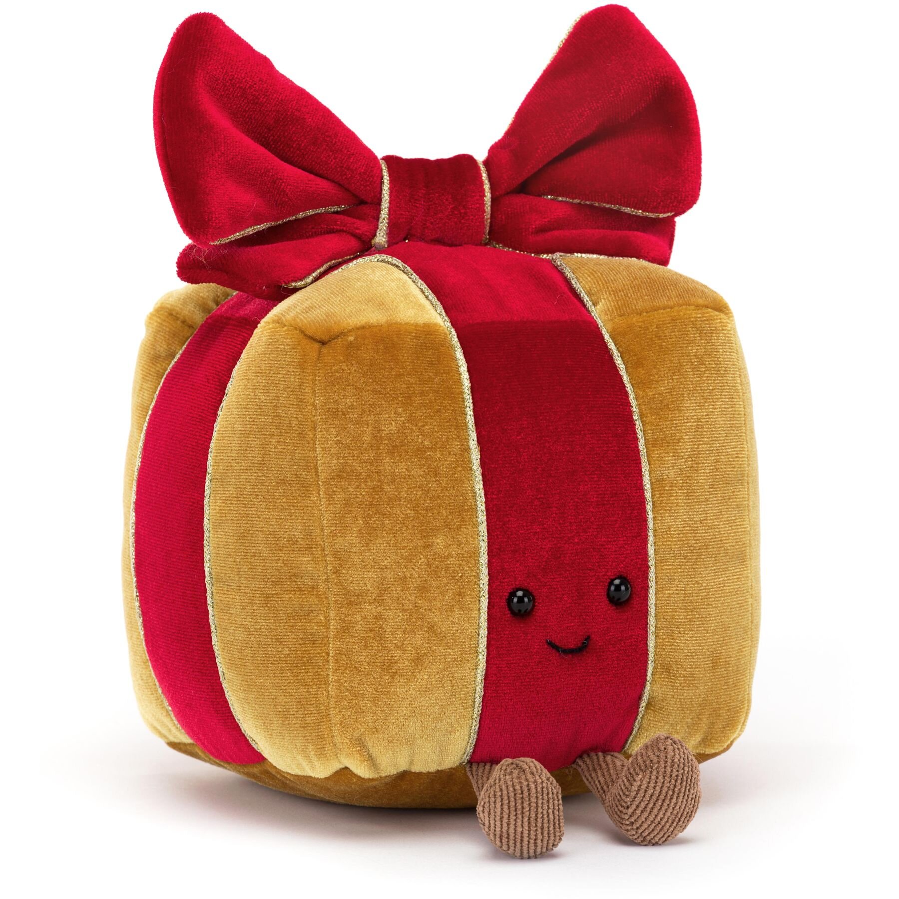 The best part of any gift is always the wrapping! Amuseable Present is a soft golden box with cranberry ribbon edged with gold braid. With a perky ruched bow, a merry smile, a suedette base and kicking cord boots, this present is absolutely correct! 11x11x11cm