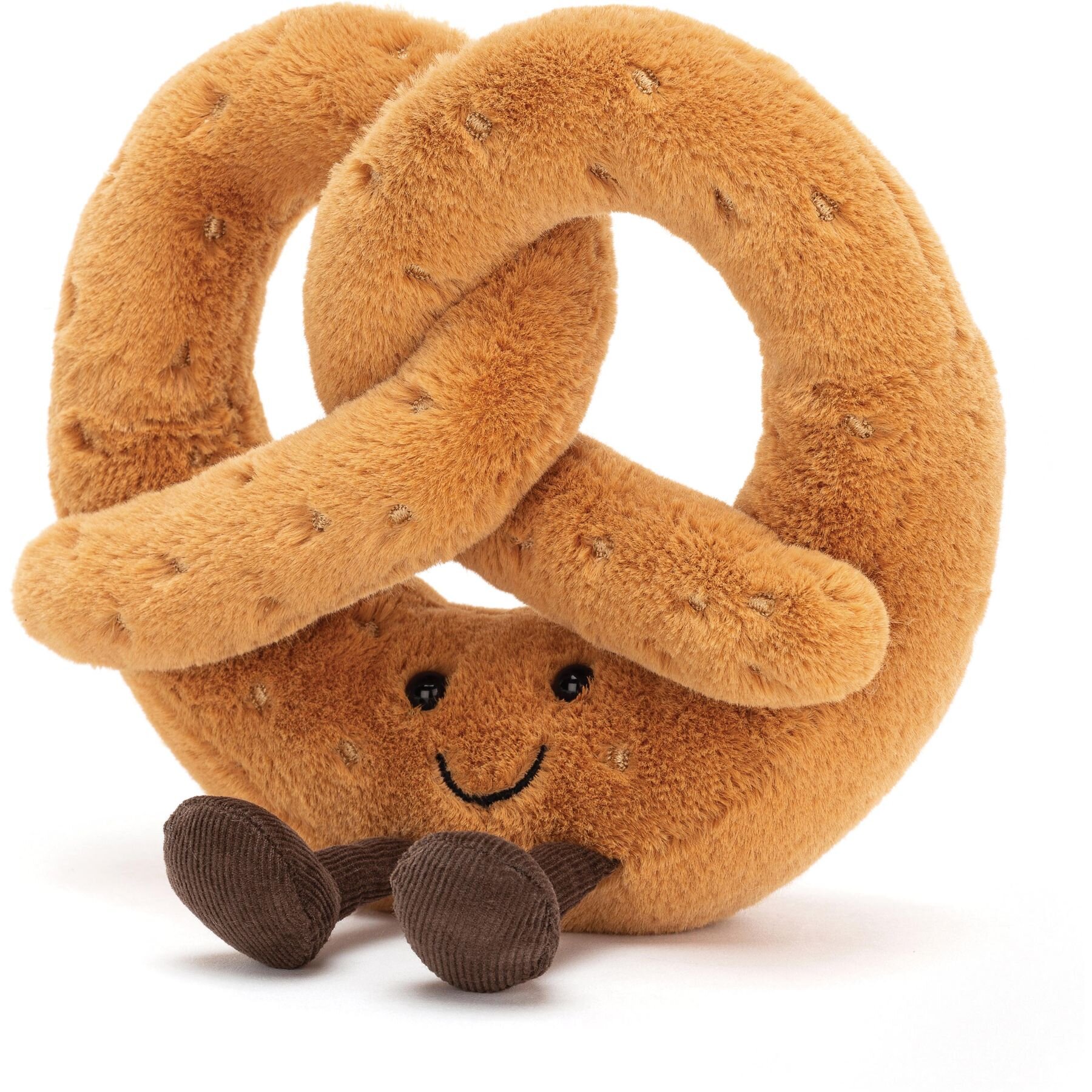 Ever the worrier, Amuseables Pretzel has a tendency to tie herself up in knots. And while she loves her job as a legal secretary, the caseload can get a little heavy.Prioritising laughter and rest help her unwind. She’s a regular at Amuseables Cauliflower and Banana’s stand-up gigs. She’s also rather ticklish. Once, at a wedding, she burst into fits of giggles when a guest squeezed past wearing a feather boa.Friday afternoons off are always spent floating lazily down the Thames, watching the world (and her worries) go by.Dimensions: 18cm x 18cm x 6cmSitting Height: 16cmMain Materials: PolyesterInner Filling: Polyester Fibres, PE BeansHard EyeABOUT JELLYCATCreating original and innovative soft toys in London since 1999, Jellycat continues to combine luxurious fabrics with designs that are sometimes quirky, sometime cute but always with a little something different that makes them stand out from the crowd! The name Jellycat was dreamt up by a child who loved jellies and cats and giggled at the thought of the two together. The silliness of the name was a great reflection of the design and so it stuck!Jellycat has been designed in the UK since their beginning and continue to work with designers in London and around the UK. The small range launched in 1999 was individual and most unusual, announcing Jellycat as a soft toy creator with a difference. Since then they have continued to work hard to combine the coolest designs with the most luxurious of fabrics in the process creating thousands of wonderfully innovative soft toys.Jellycat are continuously experimenting with designs, trying to find the most loveable combination of soft squidginess and quirky which are launched in two collections each year. It is some of the most exciting times when new Jellycat arrives and the Kid Republic team get to play with them! Seek out their quirky critters wherever you go!