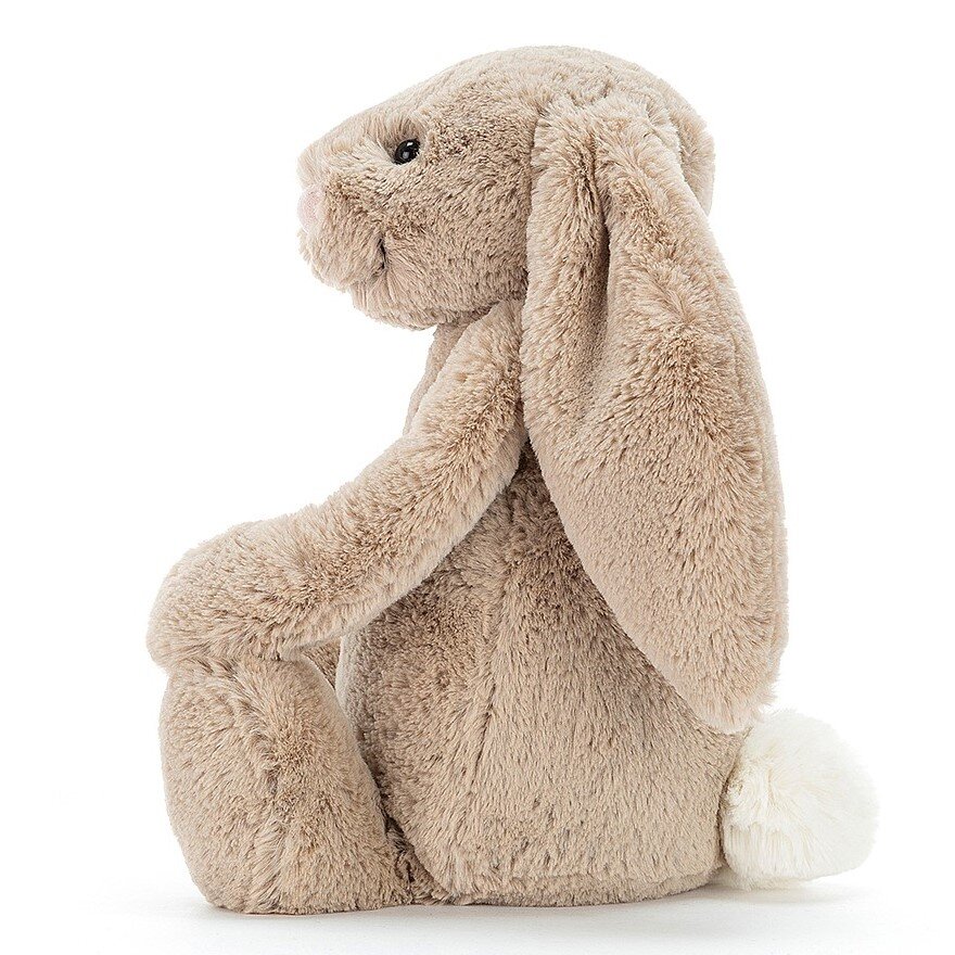 Bashful Beige Bunny is a popular fellow with scrummy-soft Jellycat fur and lovely long flopsy ears. With just one cuddle, you'll never want to let go. Irresistibly cute and a perfect gift for boys or girls. Everyone treasures this little beige bunny. Suitable from birth.Dimensions:36x15x18cmSafety & Care* Tested to and passes the European Safety Standard for toys: EN71 parts 1, 2 & 3, for all ages.* Suitable from birth.* Hand wash only; do not tumble dry, dry clean or iron. Not recommended to clean in a washing machine.* Check all labels upon arrival of purchase.ABOUT JELLYCATCreating original and innovative soft toys in London since 1999, Jellycat continues to combine luxurious fabrics with designs that are sometimes quirky, sometime cute but always with a little something different that makes them stand out from the crowd! The name Jellycat was dreamt up by a child who loved jellies and cats and giggled at the thought of the two together. The silliness of the name was a great reflection of the design and so it stuck!We have designed in the UK since the beginning and continue to work with designers in London and around the country. The small range we launched with in 1999 was individual and most unusual, announcing ourselves as a soft toy creator with a difference. Since then we have continued to work hard to combine the coolest designs with the most luxurious of fabrics in the process creating thousands of wonderfully innovative soft toys.We are continuously experimenting with designs, trying to find the most loveable combination of soft squidginess and quirky which are launched in two collections each year. Seek out our quirky critters wherever you go!