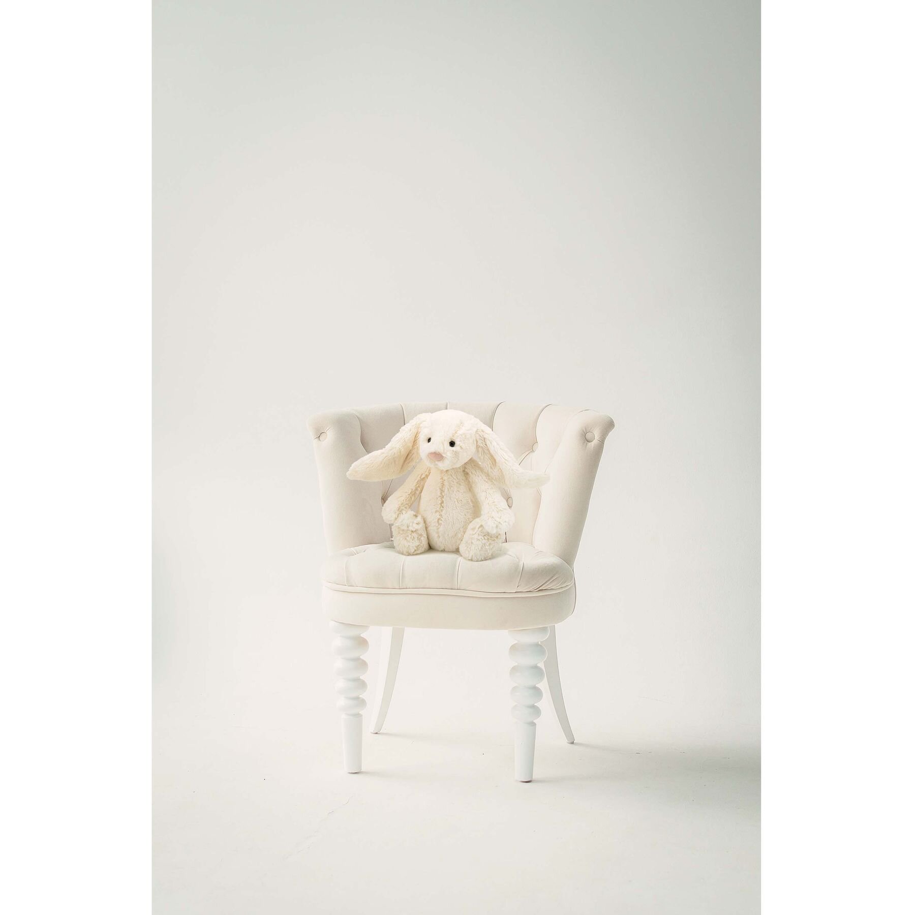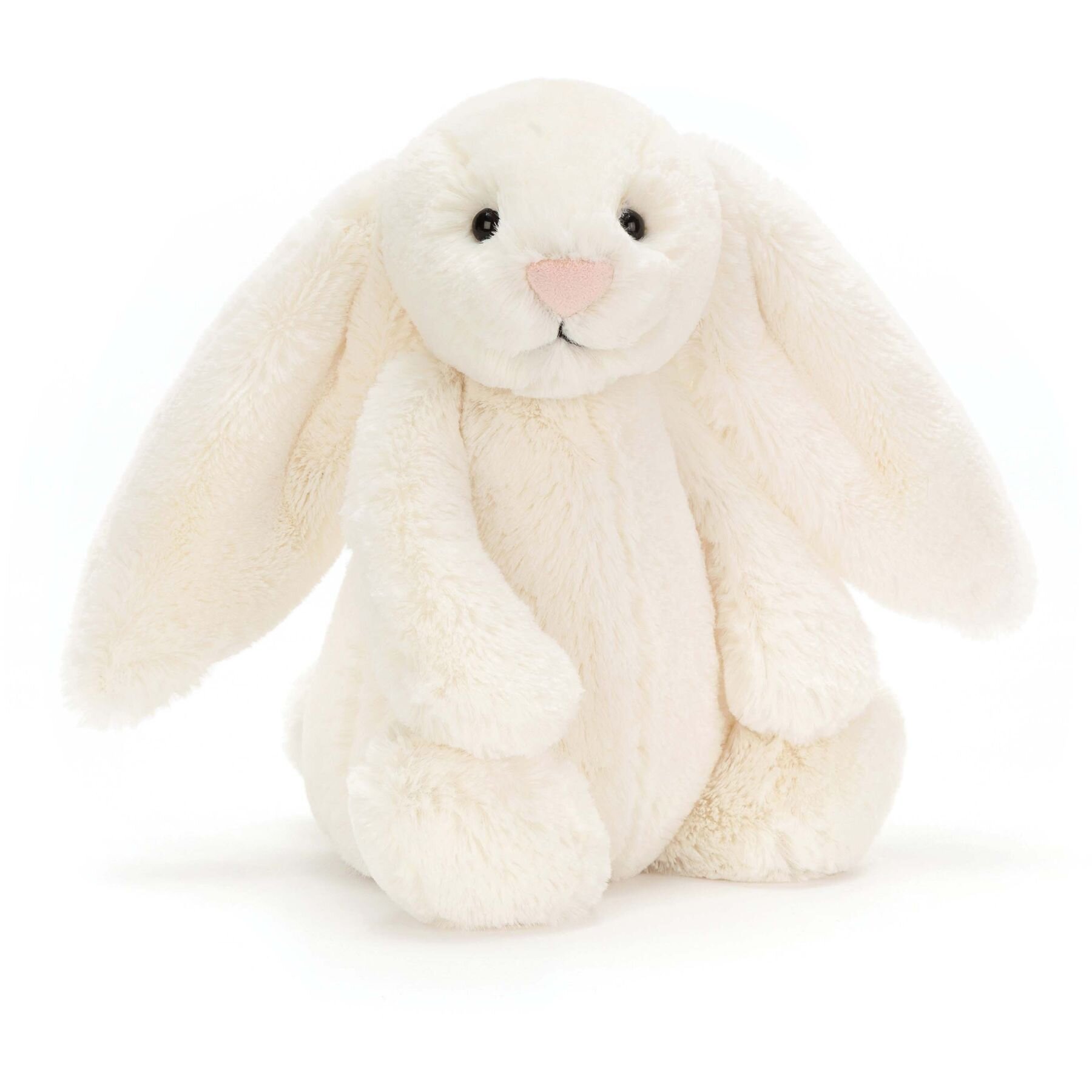 Bashful Cream Bunny’s gorgeous long ears look like two big dollops of clotted cream. Mmmm! Time for scones and a hippity-hop on the grass! With a bunny pal as soft as butter icing, summer days are so inviting! Each Bashful has a bag of beads incorporated into its design to help make it sit. All beads are enclosed within a cotton fibre inner bag. Beads are made of polyethylene (HDPE: high density polyethylene). Suitable from birth. Â