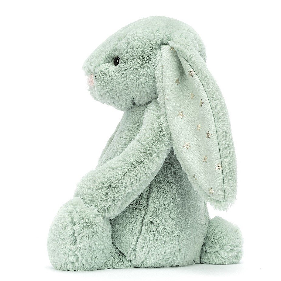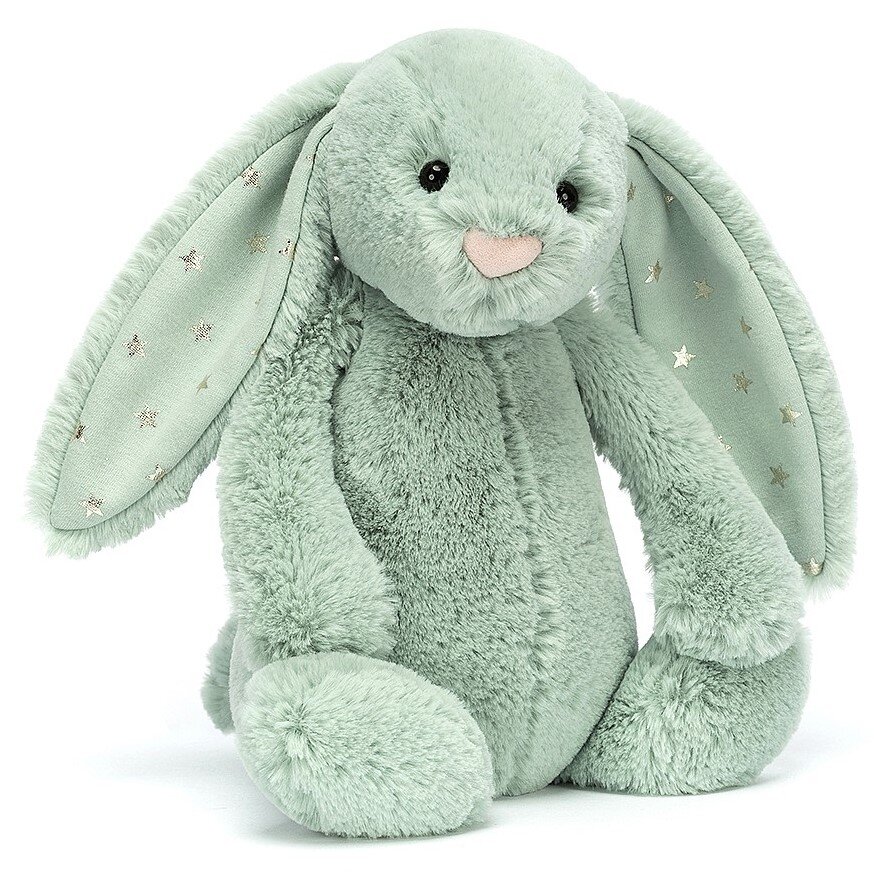 This beautiful bunny has long, flopsy ears, speckled with silvery stars.Cuddle close for enchanted slumbers and nuzzles from that suedey pink nose.Make a wish together!