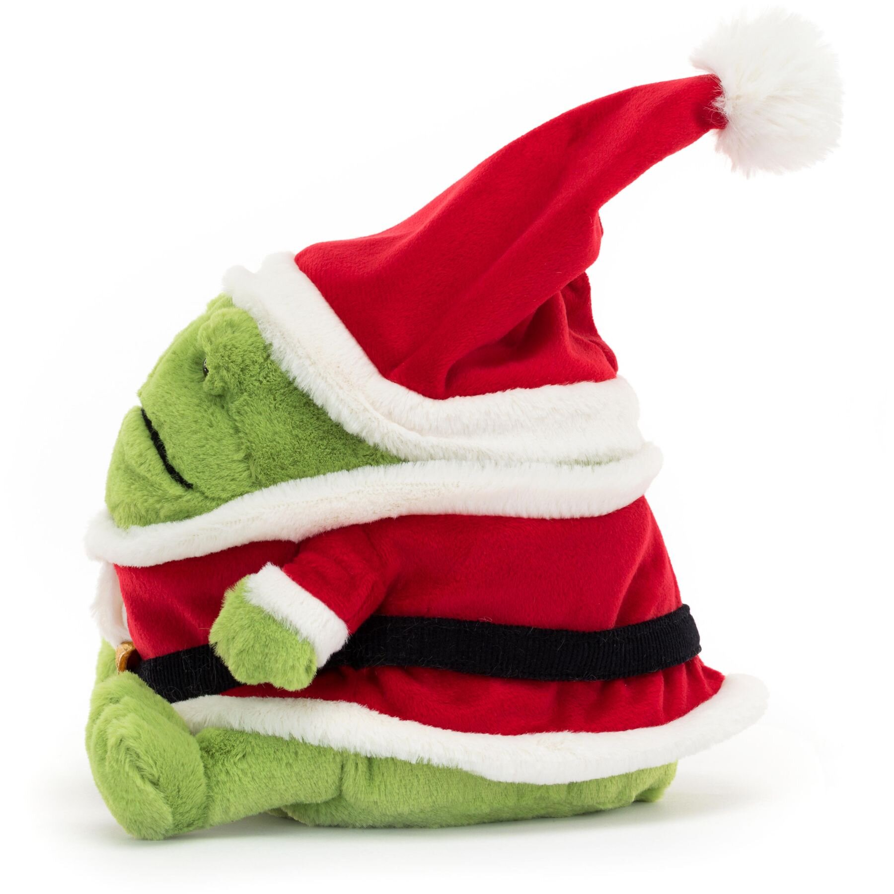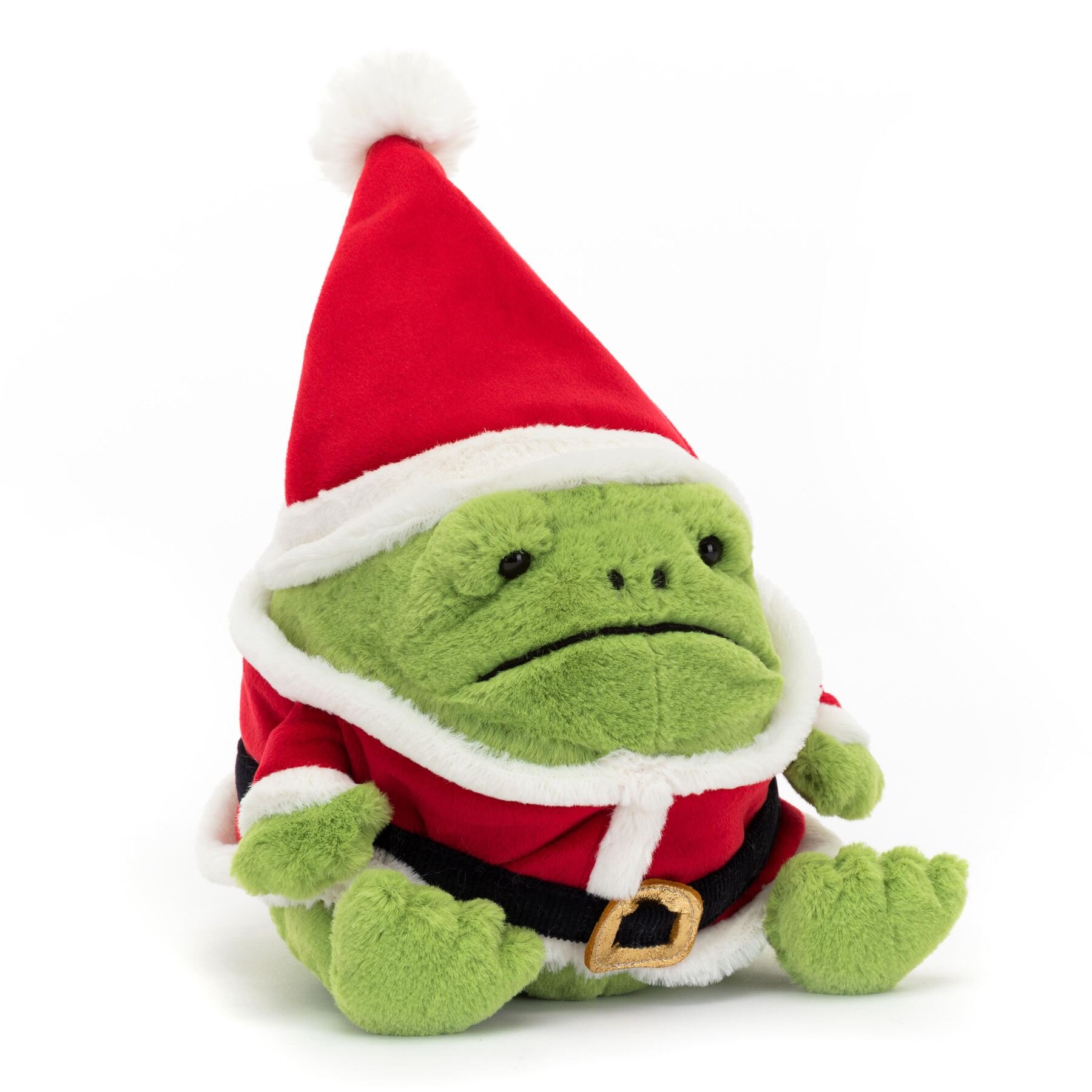Its your pea-green champ Ricky, but with a festive twist! Even Ricky's getting into the Christmas spirit! Our favourite pond friend is dressed as Santa Ricky Rain Frog, in a scarlet hat and coat with white trim, and wears a black cord belt with squishy gold buckle. Ricky's piping mouth may look grumpy but this frog's got plenty of gifts to give! 13x12x16cm