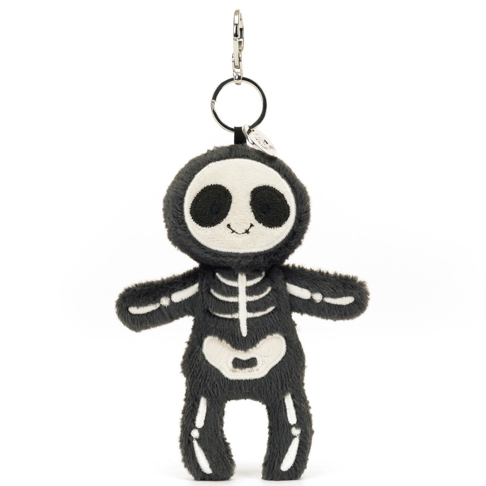 Give your bag a spookover with the Skeleton Bob Bag Charm! Kookily detailed, with deep charcoal fur and embroidered bones, Bob brings the spectral antics. With a silver steel claw and Jellycat tag, he clips on to haunt your bag!Dimensions: 20cm x 11cm x 2cmSitting Height: 15cmMain Materials: PolyesterInner Filling: Polyester FibresEmbroidered Eye