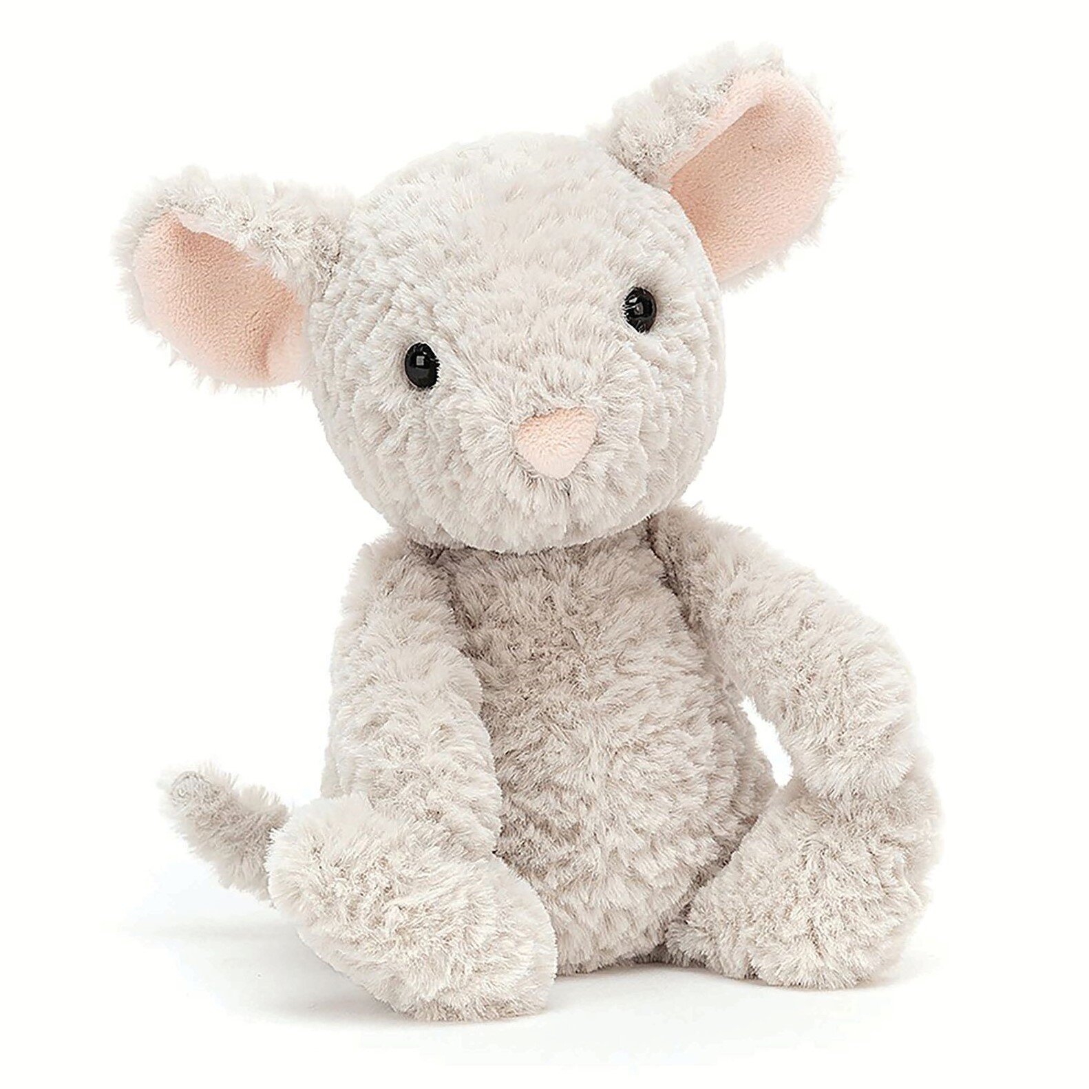 Tumbletuft Mouse is wonderfully tufty, in dove-grey scrumbly fur. This perky-tailed pip has pink petal ears, chonky-soft feet and a tousled tail. Roundy and rumpled with such a sweet face - it's magic to cuddle this marvellous mouse.
