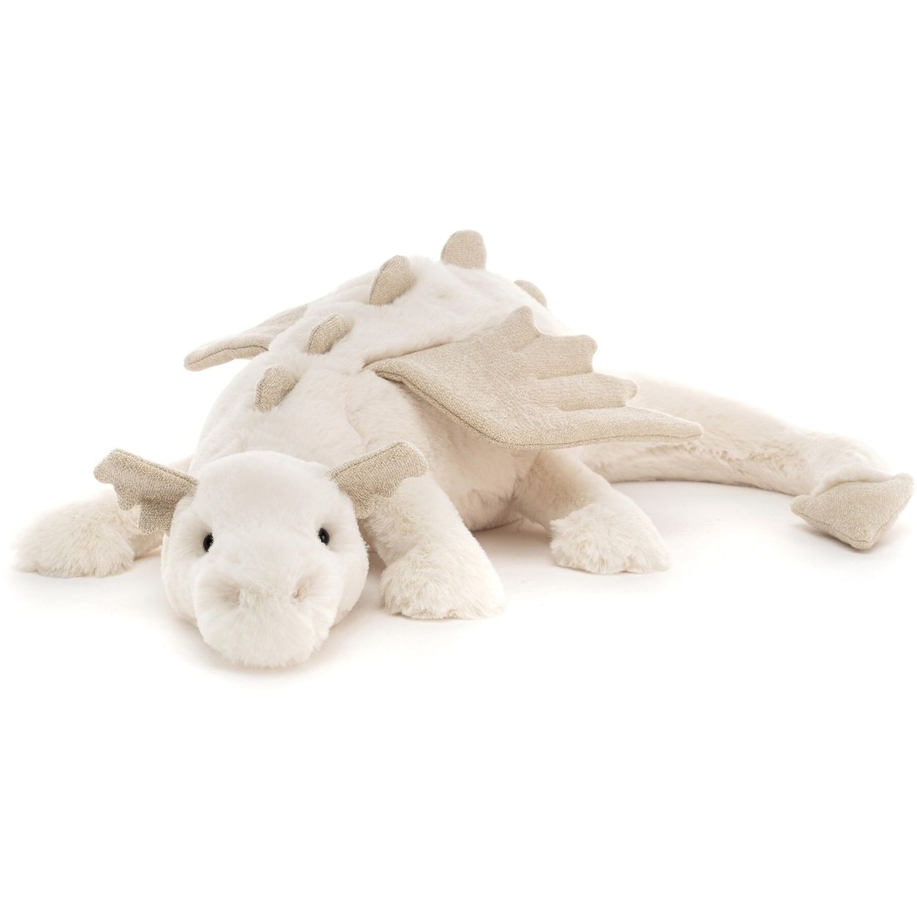 Lounging around like a creamy cloud, it's loveably lazy Snow Dragon! This marshmallow marvel shimmers with magic, from sparkling spines to ears, wings and tail dart!This sumptuous softy loves flapping up a blizzard!