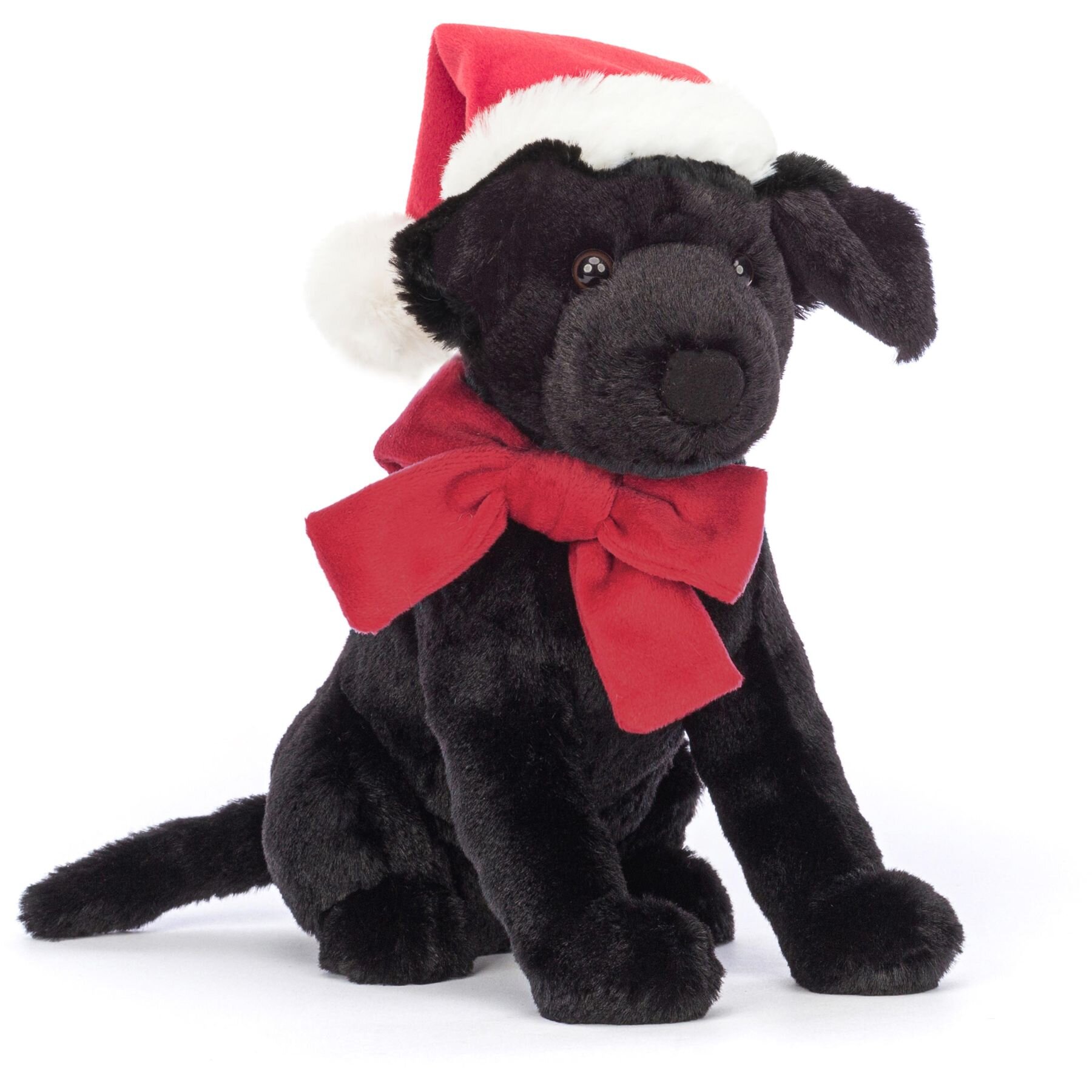Winter Warmer Pippa Black Labrador is man's best friend, specially in the colder months. Warm up with this dashing black lab, topped with festive bow and hat. Winter Warmer Pippa Black Labrador is so excited for the winter season! This floppy-eared pup has hazel eyes, a fetching red bow and a fleece-trimmed hat. Pippa sits up keenly with her long tail behind her, chunky nose sniffing for Christmas dinner! 15x8x22cm