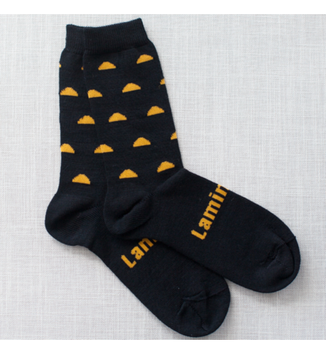 Leo - Black with Mango dome merino crew socks