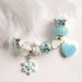This magical bracelet will dazzle with the power of ice and snow. It might be Winter forever with an icy blue snowflake, sparkling crystal, and smiling Snowman, but true love will keep things warm with a pure white heart and its glittering blue companion.