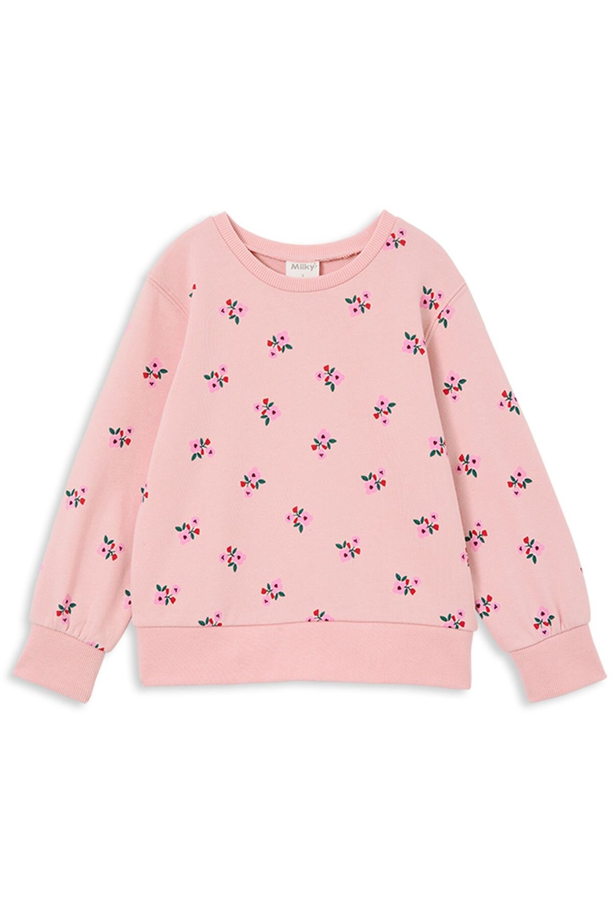 Milky Clothing Blossom Fleece Sweat. This sweatshirt is made from unbrushed fleece with an all-over print. It features a dropped shoulder, gathered cuffs, and is easy to pair with bottoms. The print is perfect for beating the winter blues. Size & Fit- • Regular fit • Drop-shouldered seams • Sleeves gathered onto the cuff • Contrast neck and sleeve cuffs • Length: 36cm (Size 4) 44cm (Size 8) Material & Care- 80% Cotton / 20% Polyester Cotton rich unbrushed fleece Snug unbrushed fleece in floral Cold Machine Wash.Australian designed children's fashion label MILKY combines the perfect mix of edgy, irresistible clothing, a refreshing colour palette and on trend styling. MILKY has the must have items for little one's, at great pricing.Come and check out the range at Kid Republic stores.