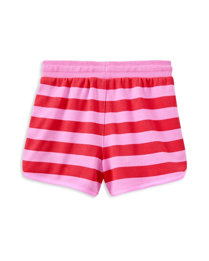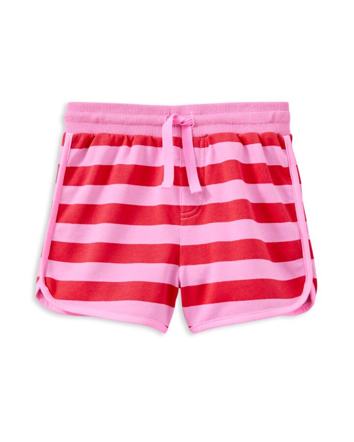 Milky Clothing Cherry Stripe Short. Bright, bold, and built for summer fun. The Milky Clothing Cherry Stripe Short is a comfy must-have for warm weather. Featuring sporty red and pink stripes and made from soft unbrushed fleece, these shorts are perfect for play, park hangs, or lounging at home. The elastic waistband with functional drawcord makes for easy dressing, and the relaxed fit allows for all-day movement. Pair with the matching Cherry Stripe Sweat or mix and match with your fave Milky tees.