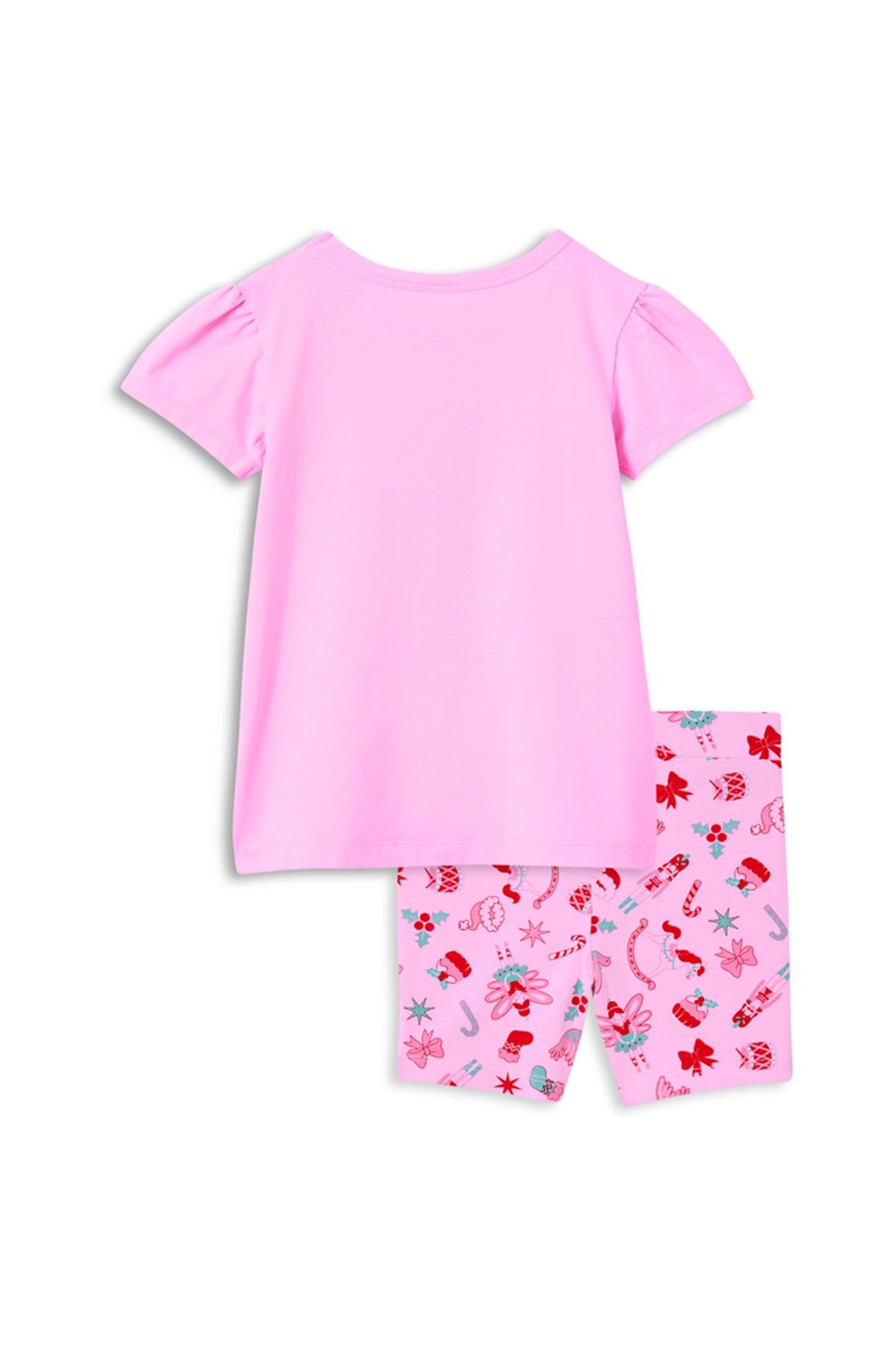 Milky Clothing Fairy Floss PJs. Made from super soft cotton elastane that's hard-wearing they will retain their shape wash after wash. These PJs are a bike short style and cap sleeve tee combo on a pink base. With a centre front festive Christmas print they will become a favorite for bedtime. Deck out the whole family in matching Christmas sleepwear! Choose from our adorable Christmas Zip Romper for babies, cozy two-piece Christmas pajamas for kids, and elegant Christmas nighties for little girls.