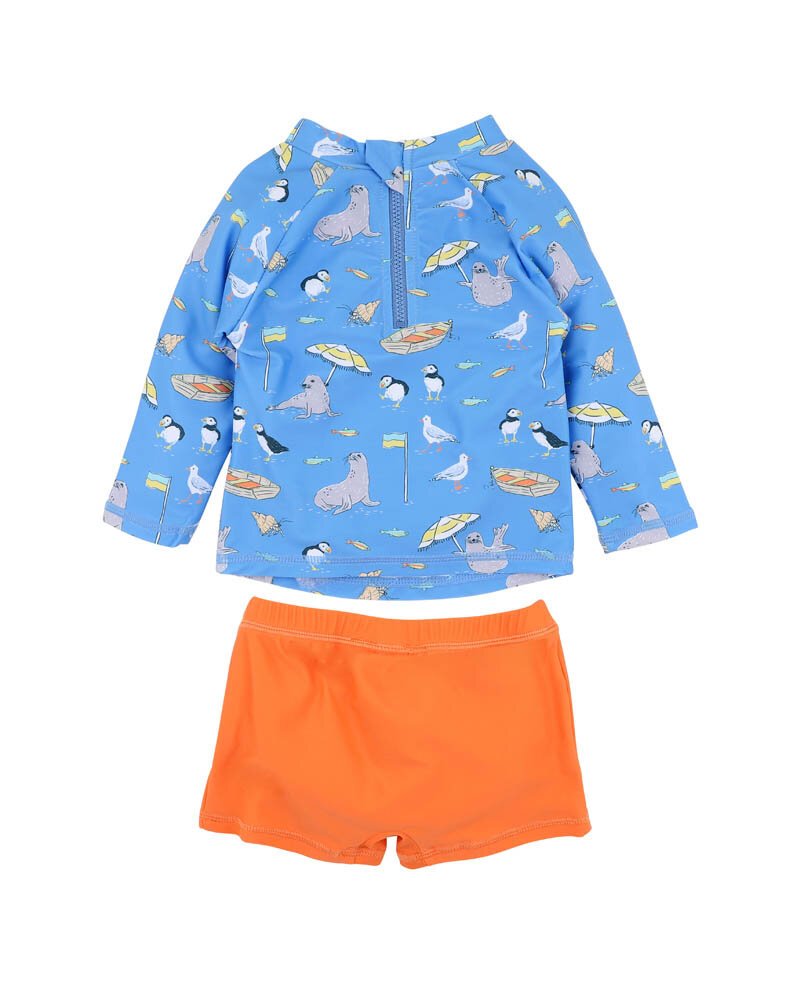 Whether it's paddling in the shallows or a full day at the beach, this sweet two-piece set is ready for sunny adventures. The playful print brings to life a cast of quirky sea creatures, while the practical, easy-wear design keeps little ones comfortable and protected as they splash the day away.