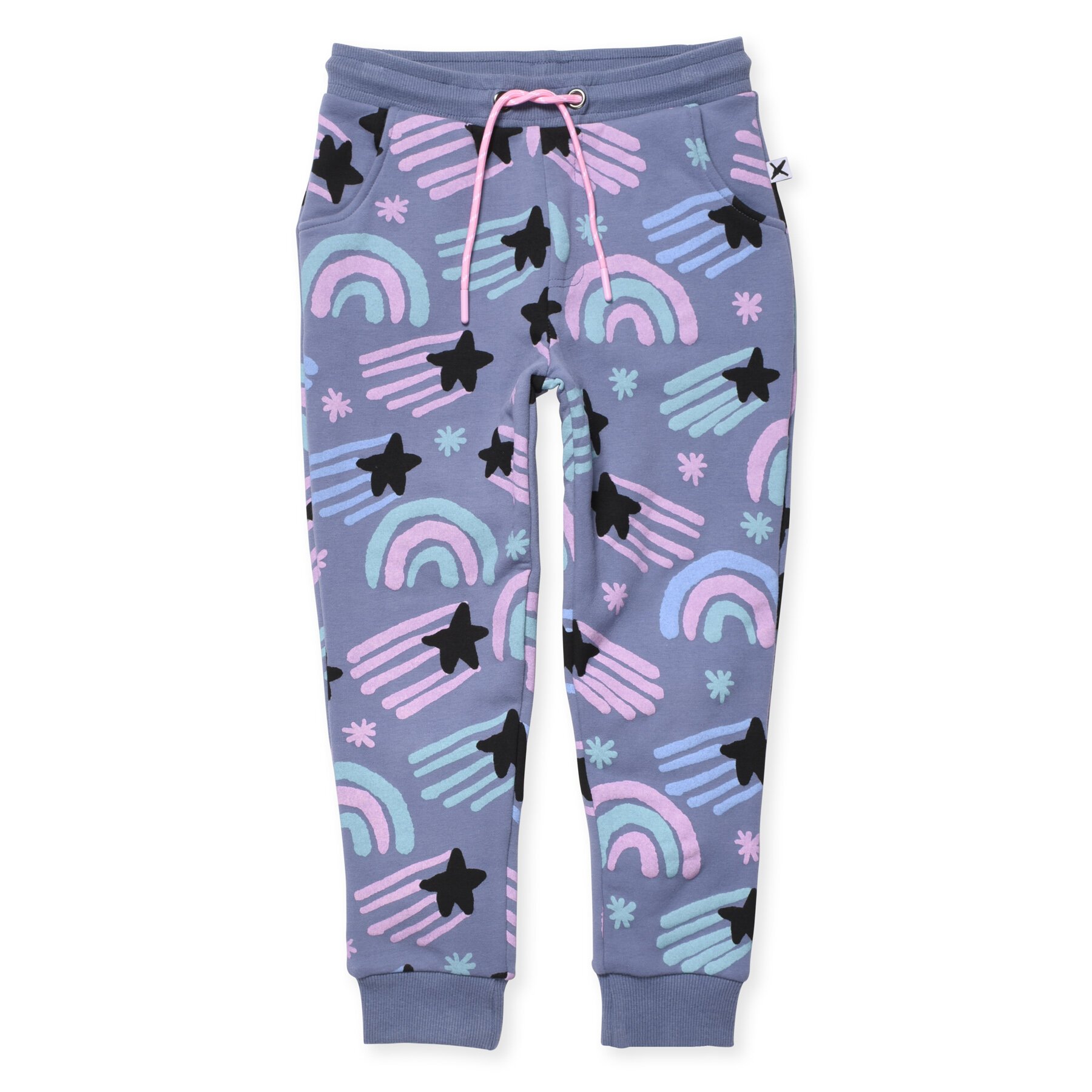 Girls straight leg trackies with front pockets, shoelace cord and 2x2 rib waistband and cuffs.