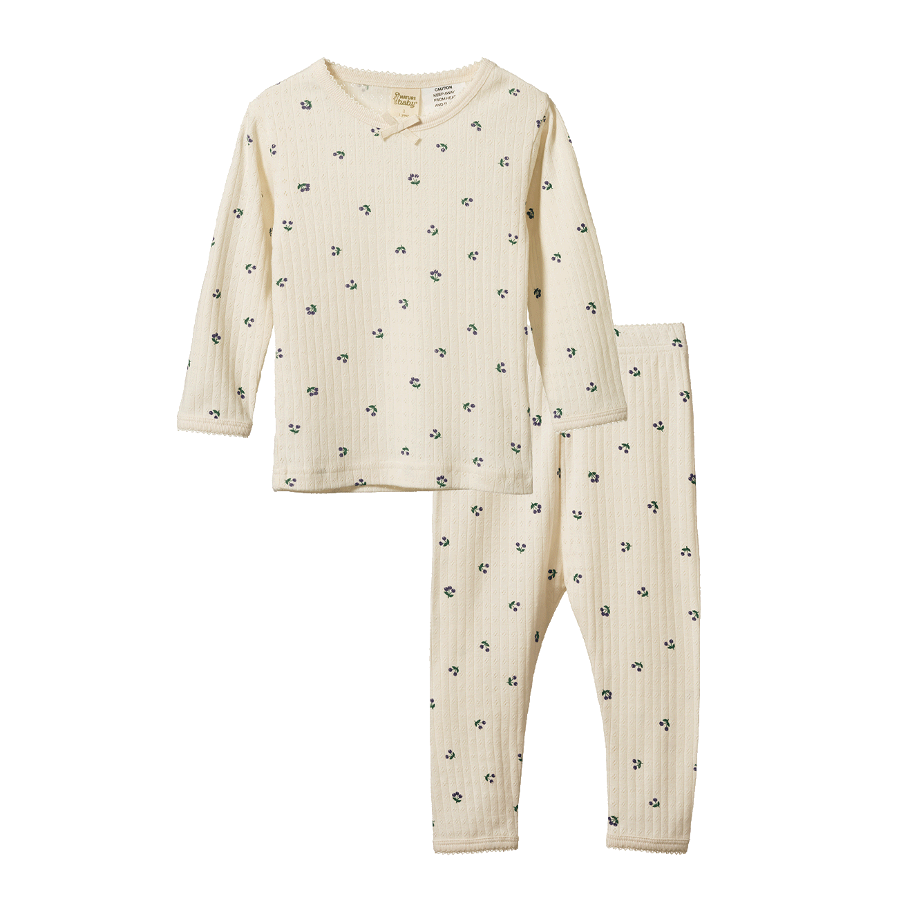 Nature Baby 2Pc L/S Pyjama Set Pointelle - Winter Berry Print