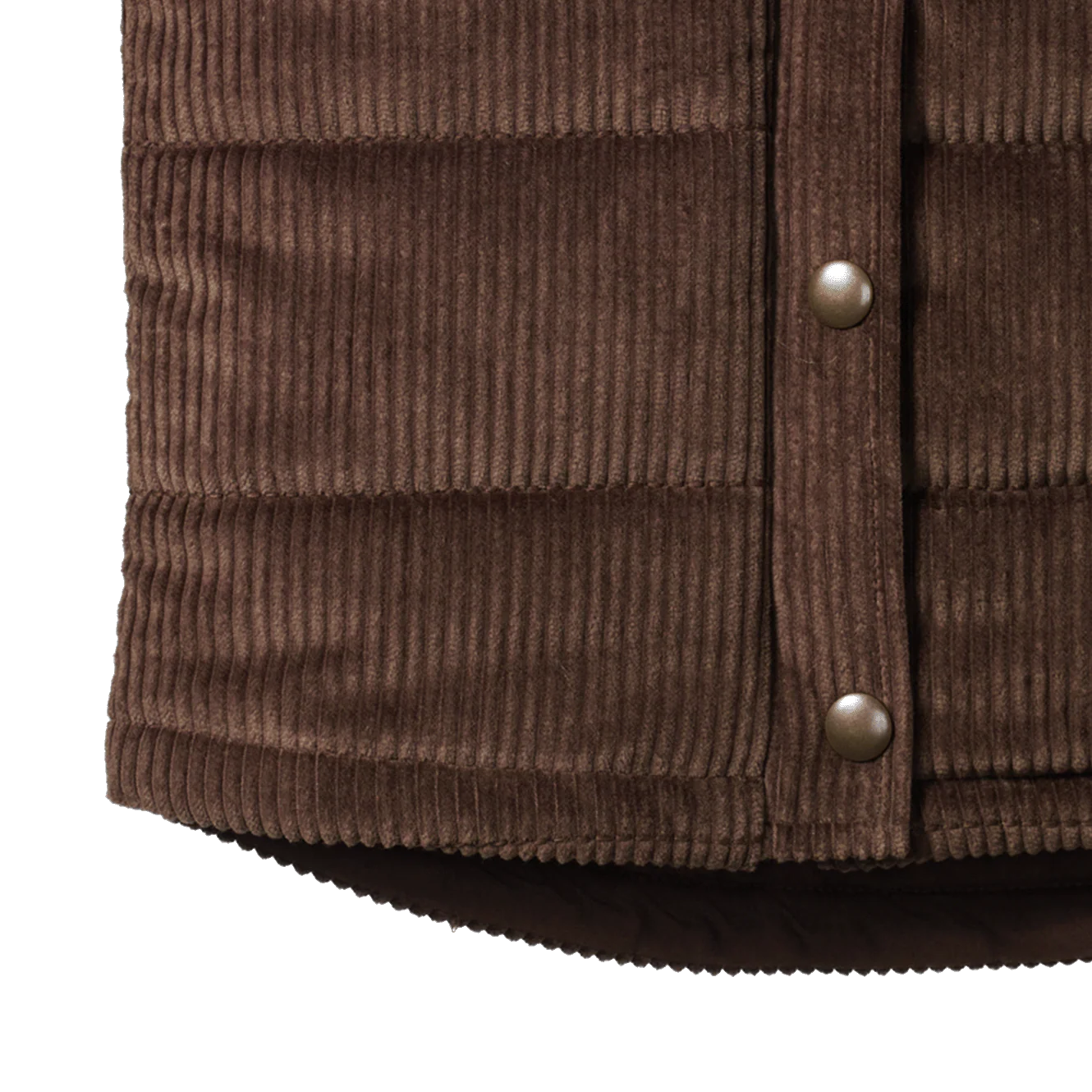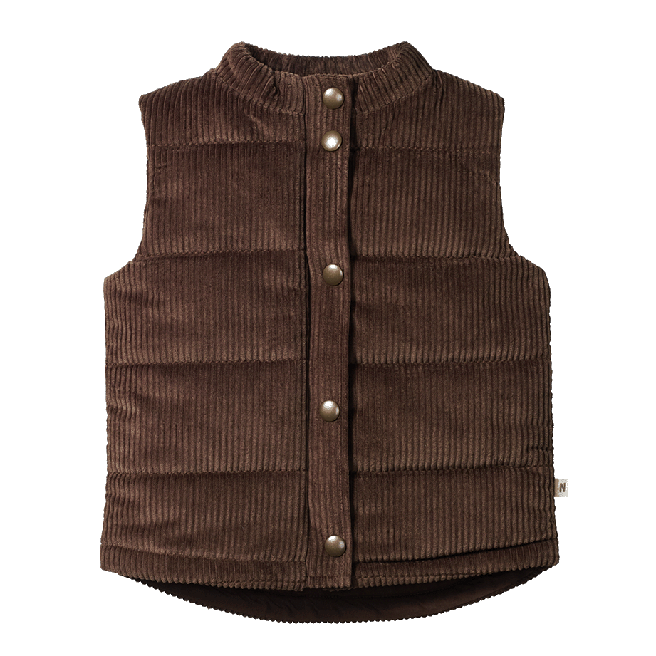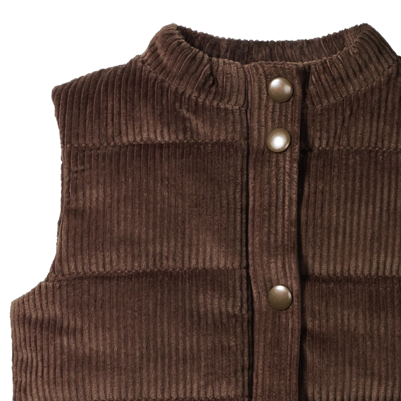 A cosy layering piece for cooler days, the Abel Vest is crafted from soft organic cotton corduroy with a quilted body for warmth and comfort. Designed with both a YKK zip and snap dome closure at the front, it's a practical and stylish piece for everyday adventures.