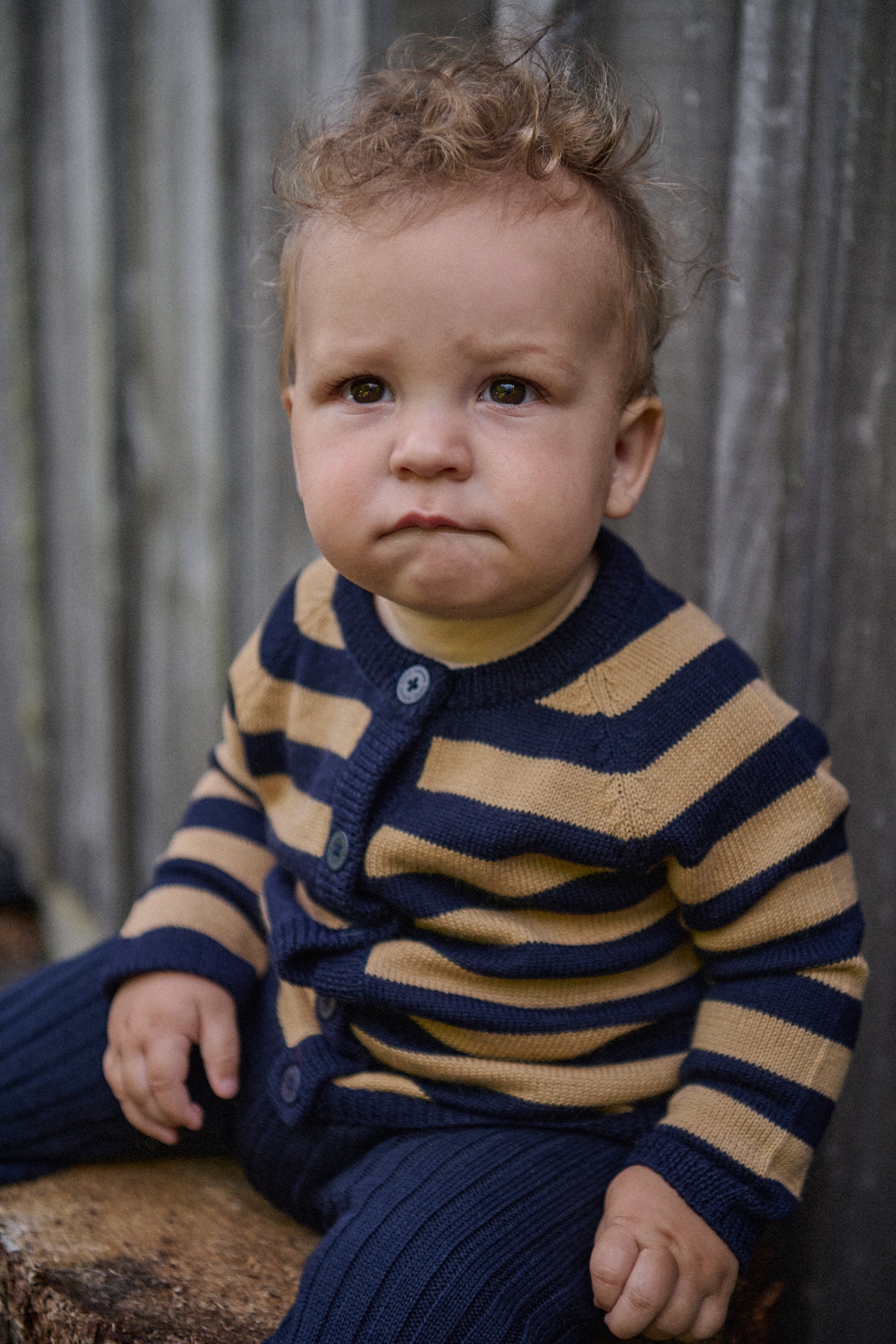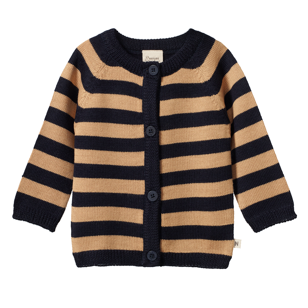 Nature Baby Merino Knit Cardigan - Navy/Caramel Stripe