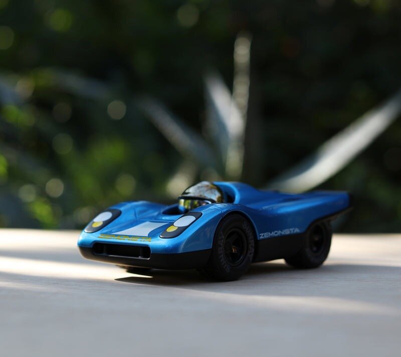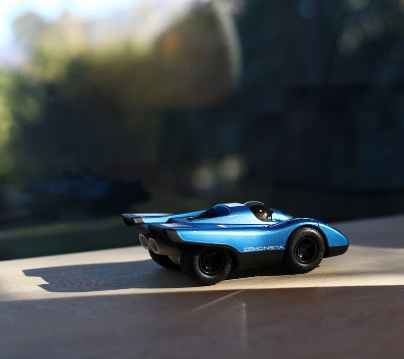 Block your ears, Zemonsta is firing up and even when idling one's skin begins to crawl. Another formidable and fierce track eater has arrived and we think Ken could be a little nervous (we're shaking too). Gorging on chunks of inspiration from the iconic Porsche 917 we at Playforever set out to abstract the beast of beasts. In fact, with all the Zemonsta untamed fury, we'll probably need to unload some extra rows of Sunray tires for test day. Zemonsta is hungry, move out of the way or be devoured.