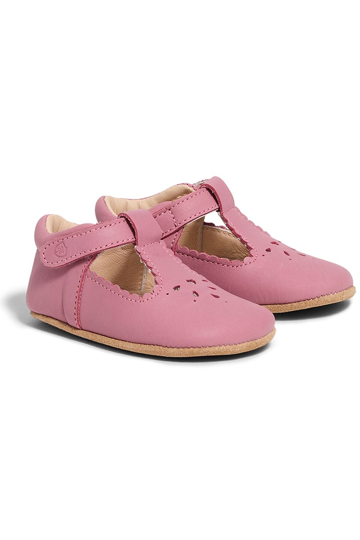 Hand-made from soft, natural leathers Fully leather-lined for comfort Classic T-bar design Scalloped edging Cut-out detailing on the toe Front hook and loop strap for easy on and off Great adjustability Embossed Pretty Brave logo on the strap Soft, flexible outsole Allows for natural foot development and sensory support Free from harmful chemicals Designed in New Zealand Made in Indonesia Available in sizes S, M, L, XL Sizes S and M feature a non-slip suede sole Sizes L and XL feature a flexible, non-slip rubber sole