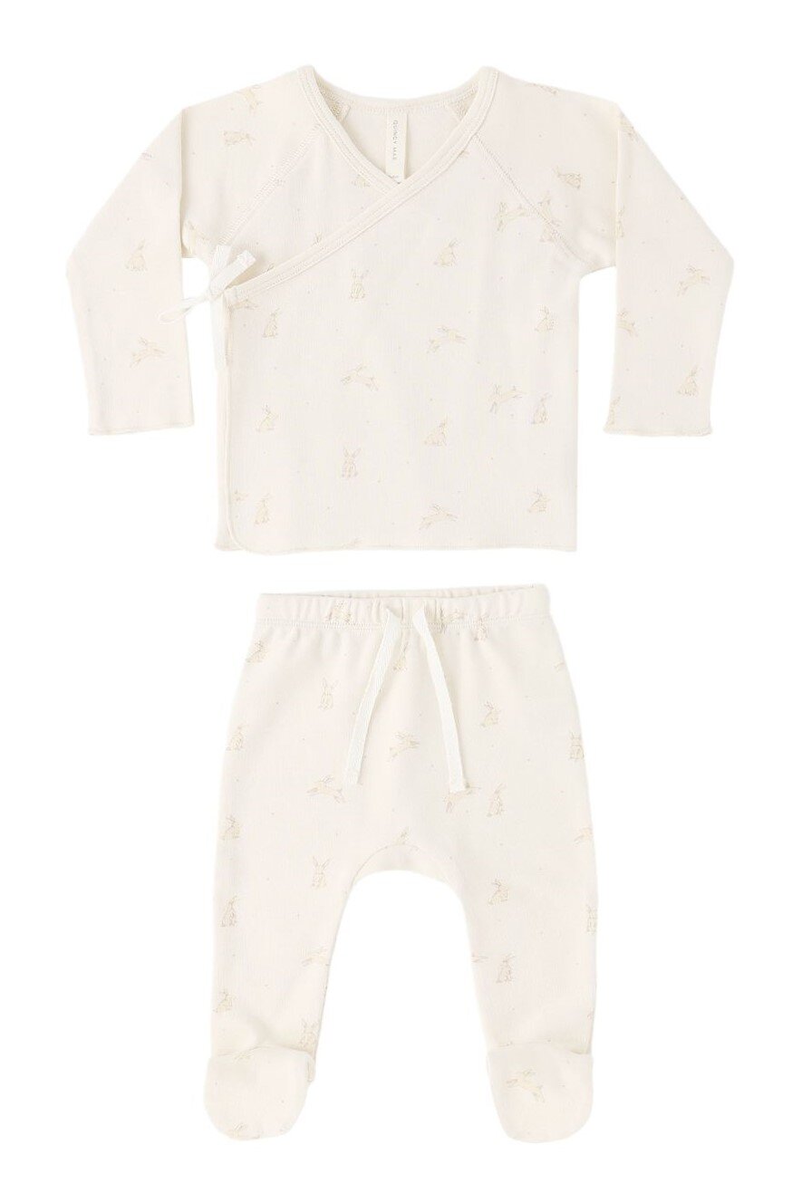 Quincy Mae Wrap Top + Footed Pant Set - Bunnies