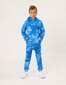 · Blue elasticated self-trim waistband with workable drawstring ties