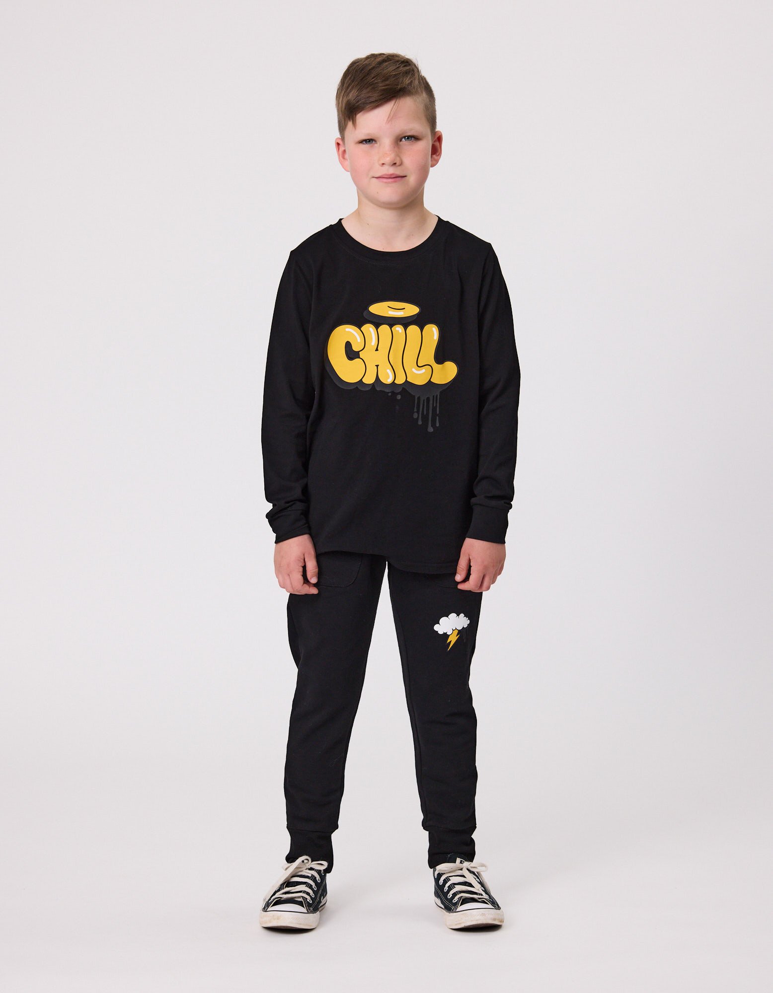 · Small ‘Cloud with Bolt’ placement print on front left thigh