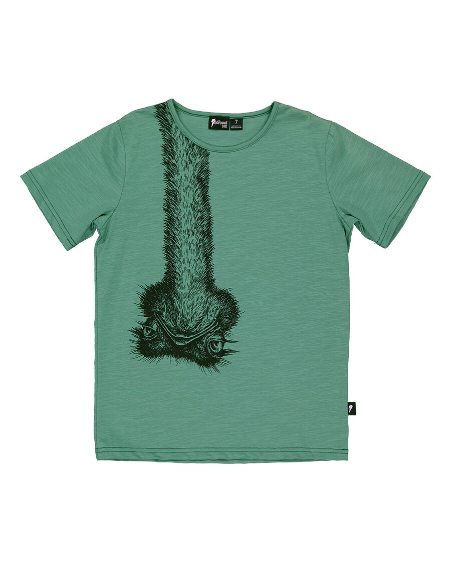 - Ostrich placement print in black on front