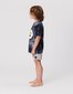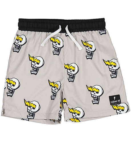 Stretch polyester board short in concrete with skull yardage print & contrast black waistband & rear pocket with logo bolt in yellow. Comfy stretch waistband with workable drawstring ties & soft mesh lining. Radicool Dude fabric label on leg. Some of the comfiest boardies around, your little grom’s going to want to live in these all summer long.