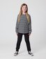 Unisex cotton / spandex longsleeve tee in black & white stripe. Scoop hem & Tribe fabric badge on chest. Super stretchy & thicker than your average tee! A cosy winter-weight tee, so comfy it’s sure to become a fave.