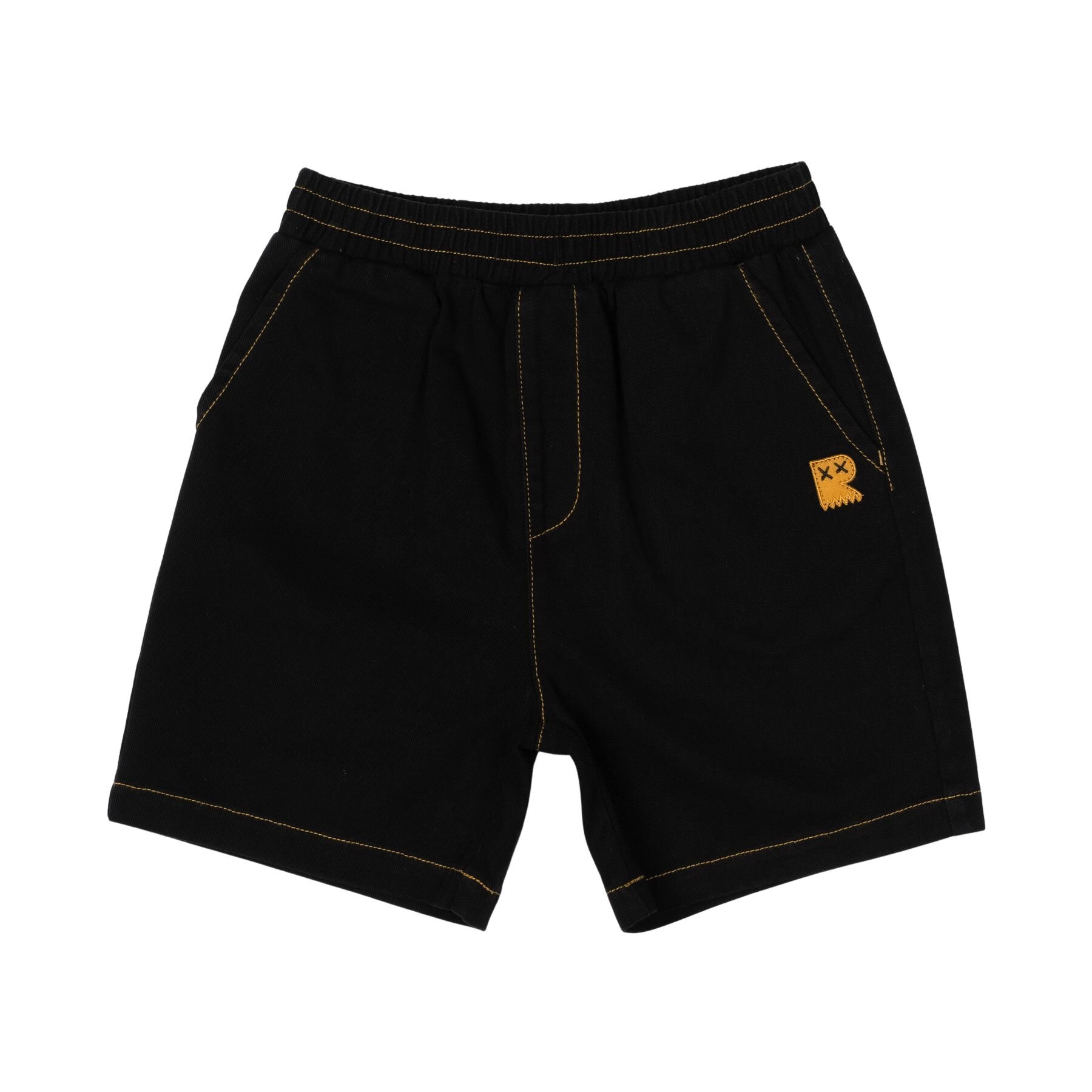Introducing our Black Wash Denim Shorts! Made from black washed 100% cotton denim, these shorts include an elasticated waistband, side pockets, back pocket, and contrast brown stitching.
