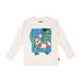 Introducing our Dino Swim Rashie! Made from recycled 85% polyester and 15% elastane, this UPF 50+ rashie features a cream base with raglan long sleeves and a front print of a swimming dinosaur.