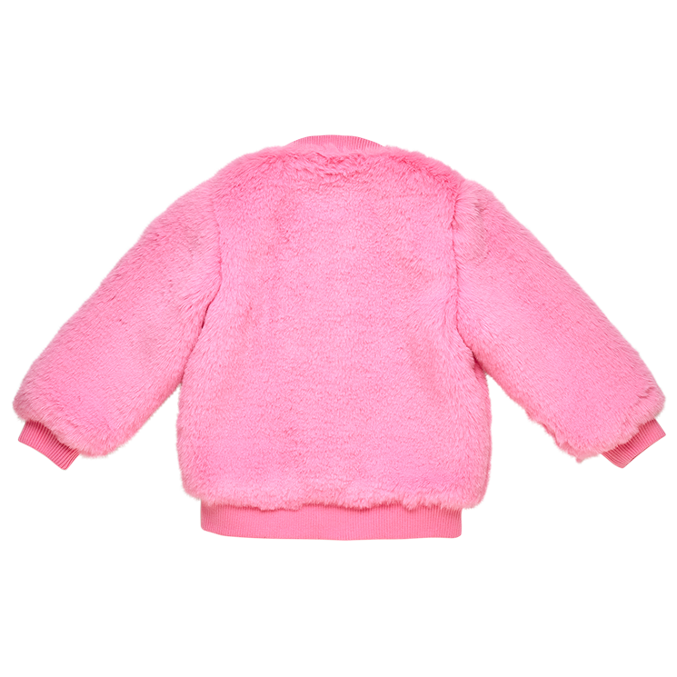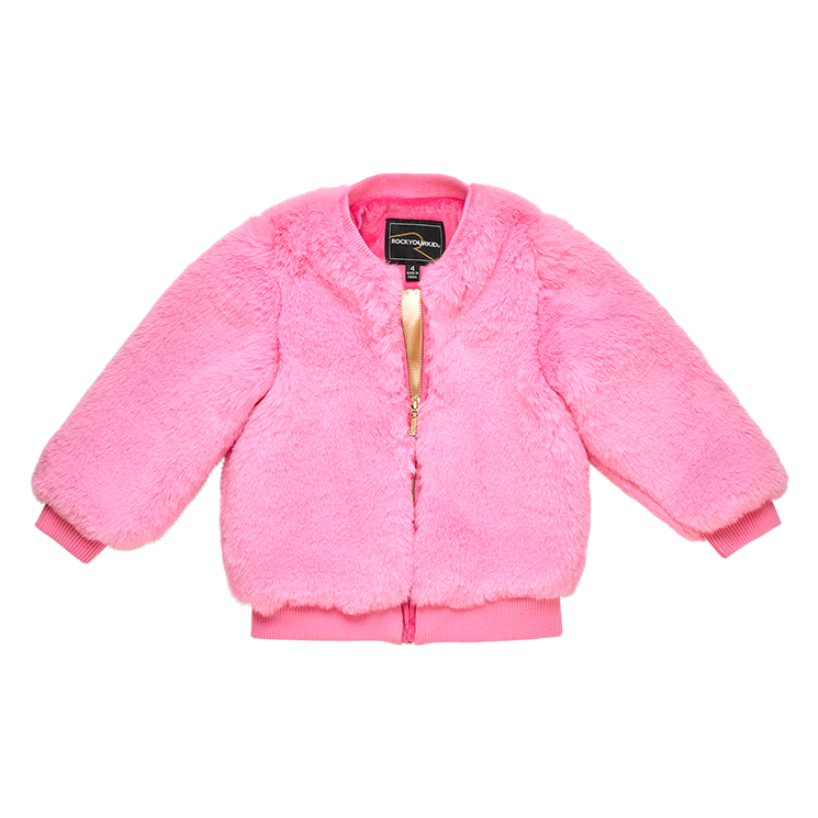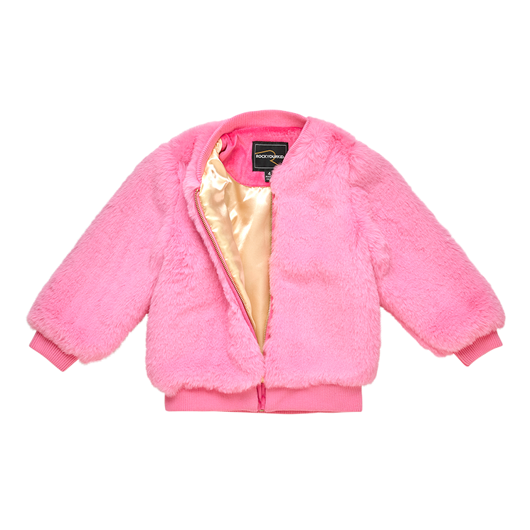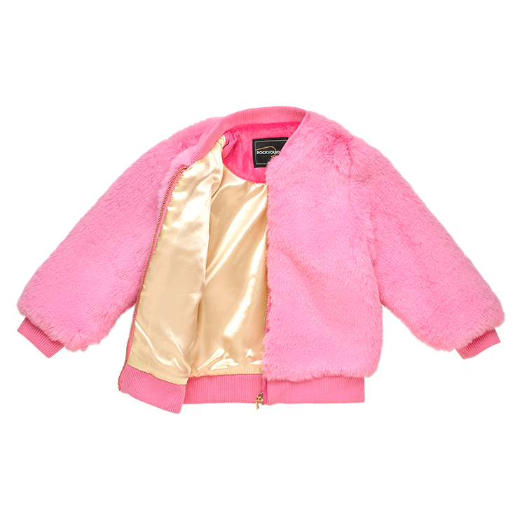 60% Acrylic 40% Polyester Faux Fur. Rib collar, sleeve cuffs and waist band. YKK gold zipper. 100% polyester satin lining.