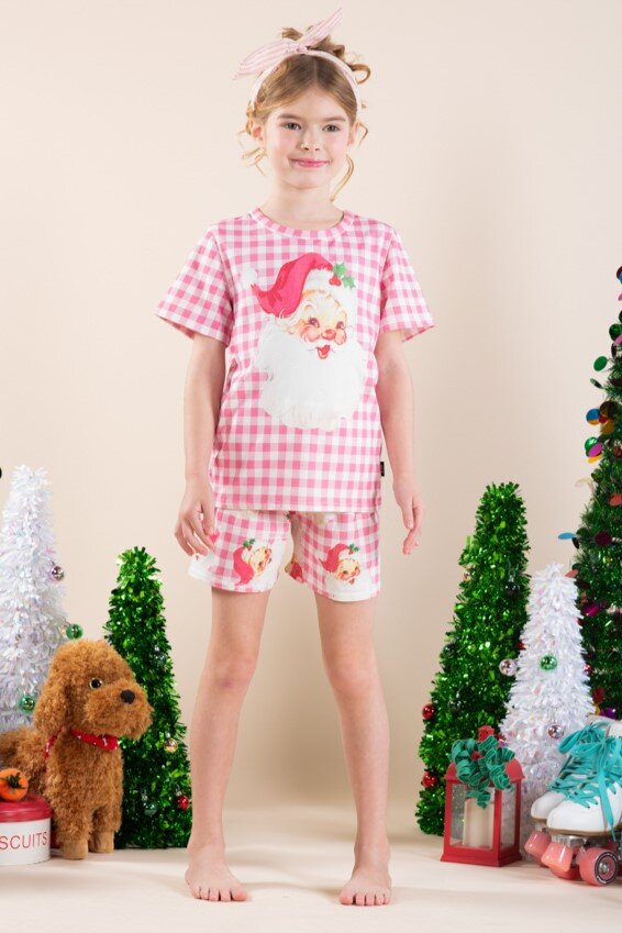 Pink, plaid and Santa? All mixed in the perfect PJ Set. The Pink Plaid Santa PJs will be the outfit to beat on Christmas morning!
