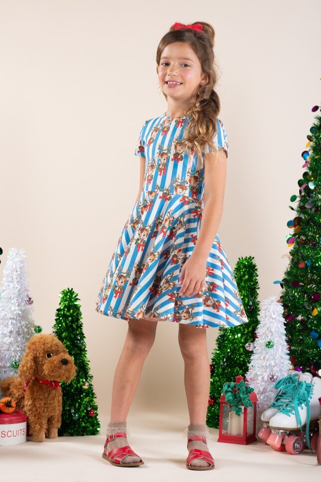 May the cheer live on in the Reindeer Cheer Waisted Dress! Made from 95% Cotton, 5% Elastane Jersey